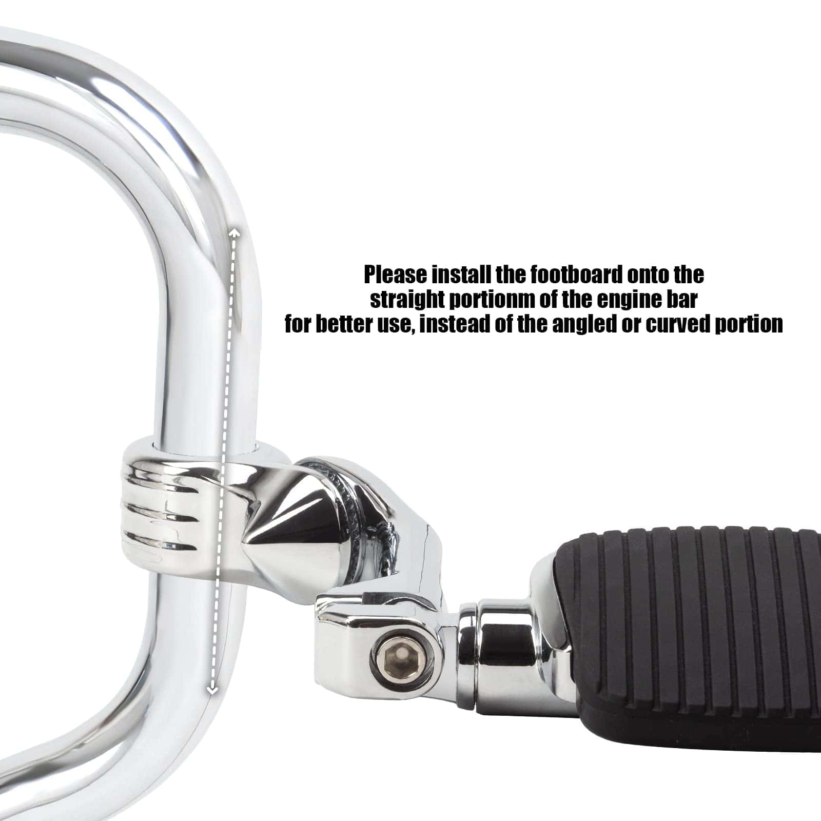 5. COMPATIBILIDAD – Compatible con protectores de motor/barra de choque de 1.25″, como Harley Sportster Softail Touring Road Glide Road King Street Glide Electra Glide. No es compatible con protectores de motor cortados.