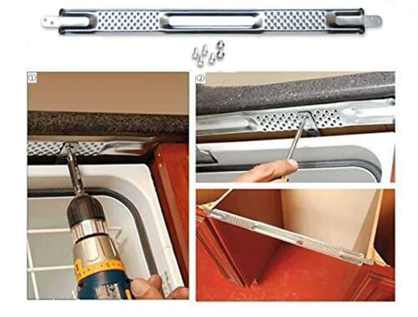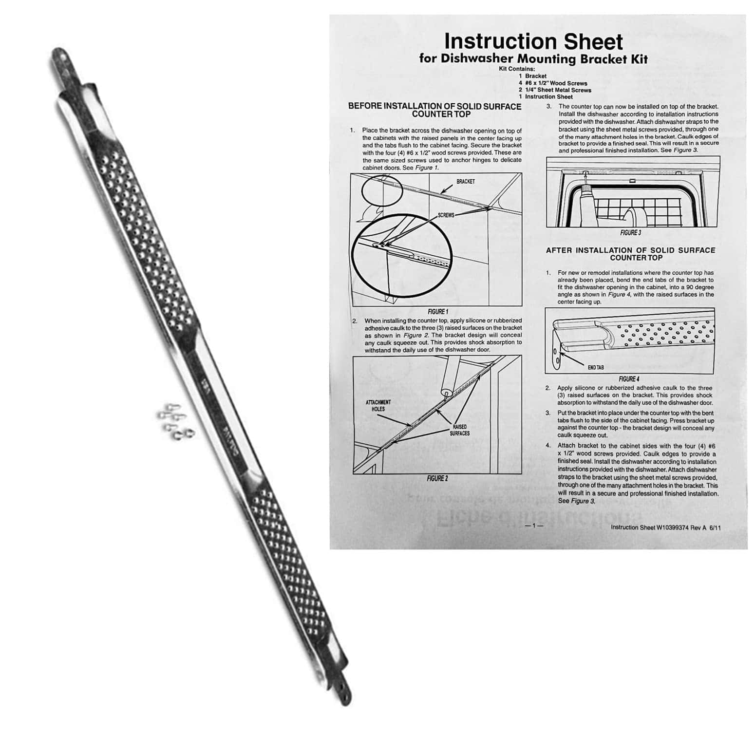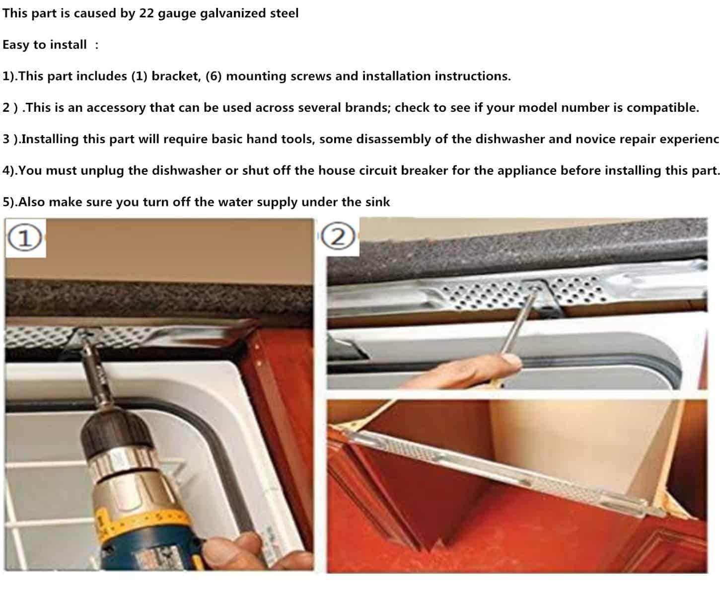 Kit de soportes para lavavajillas W10426979. Este soporte es adecuado para encimeras de granito, cuarzo, mármol, vidrio, concreto y otros materiales sólidos donde los tornillos no se pueden fijar directamente. Incluye (1) soporte para lavavajillas y (6) tornillos de montaje. Fácil de instalar. Hecho de acero galvanizado No. 22. Compatible con diversas marcas de lavavajillas como Whirlpool, KitchenAid, Maytag, etc. Producto de reemplazo de alta calidad. Nota: Este es un repuesto de la marca Components, no un producto OEM.