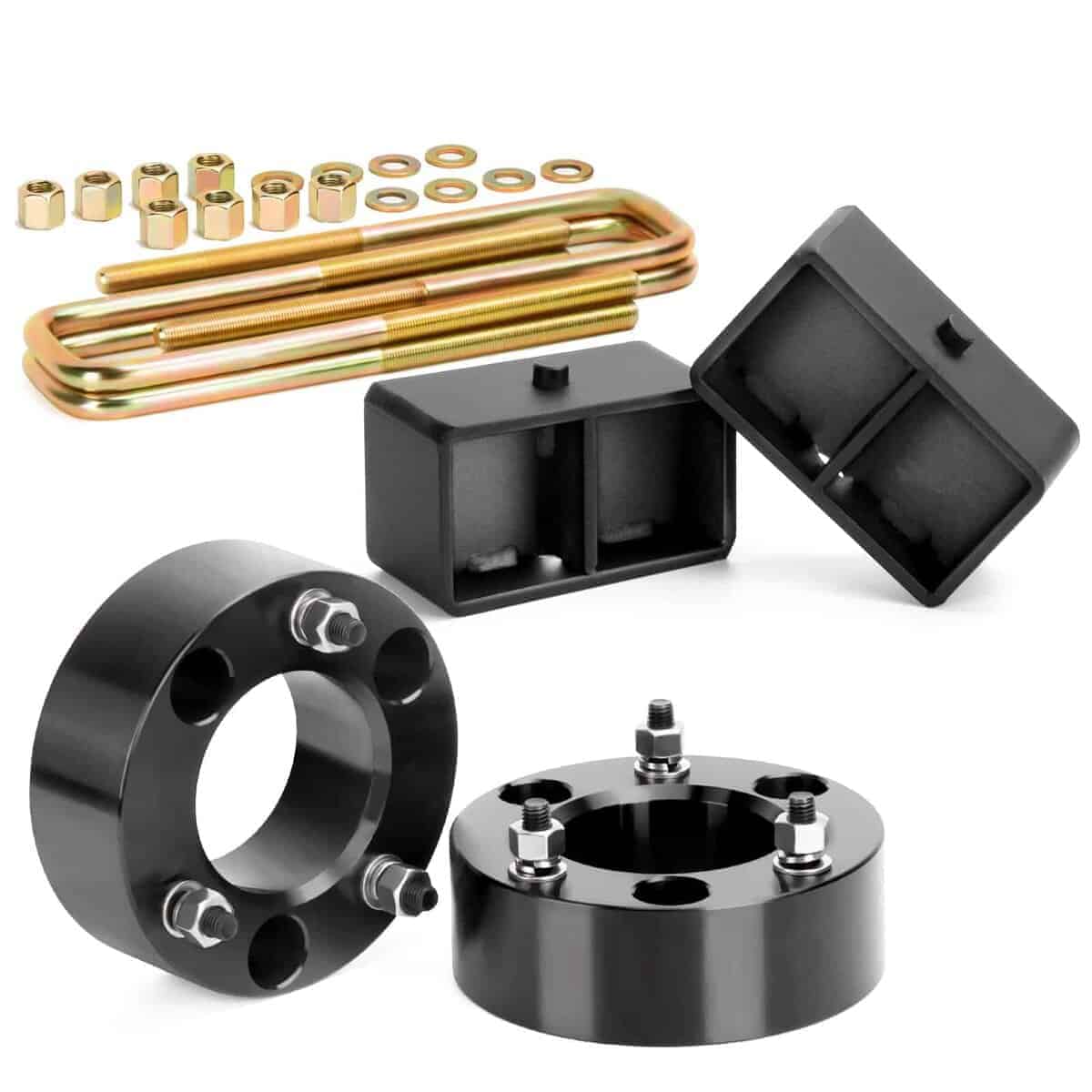 2. Material: Máquina CNC con separador de elevación delantero de aluminio 6061 T6, más ligero y más resistente que el acero soldado. Diseño de Cruz KSP(«+») en el bloque de elevación trasero, que es más duradero que el diseño de una sola pieza. Los pernos en U extendidos con arandela más gruesa y rosca de 9/16″-18 pueden adaptarse a la elevación de 2-4″, mejor que el original de fábrica.