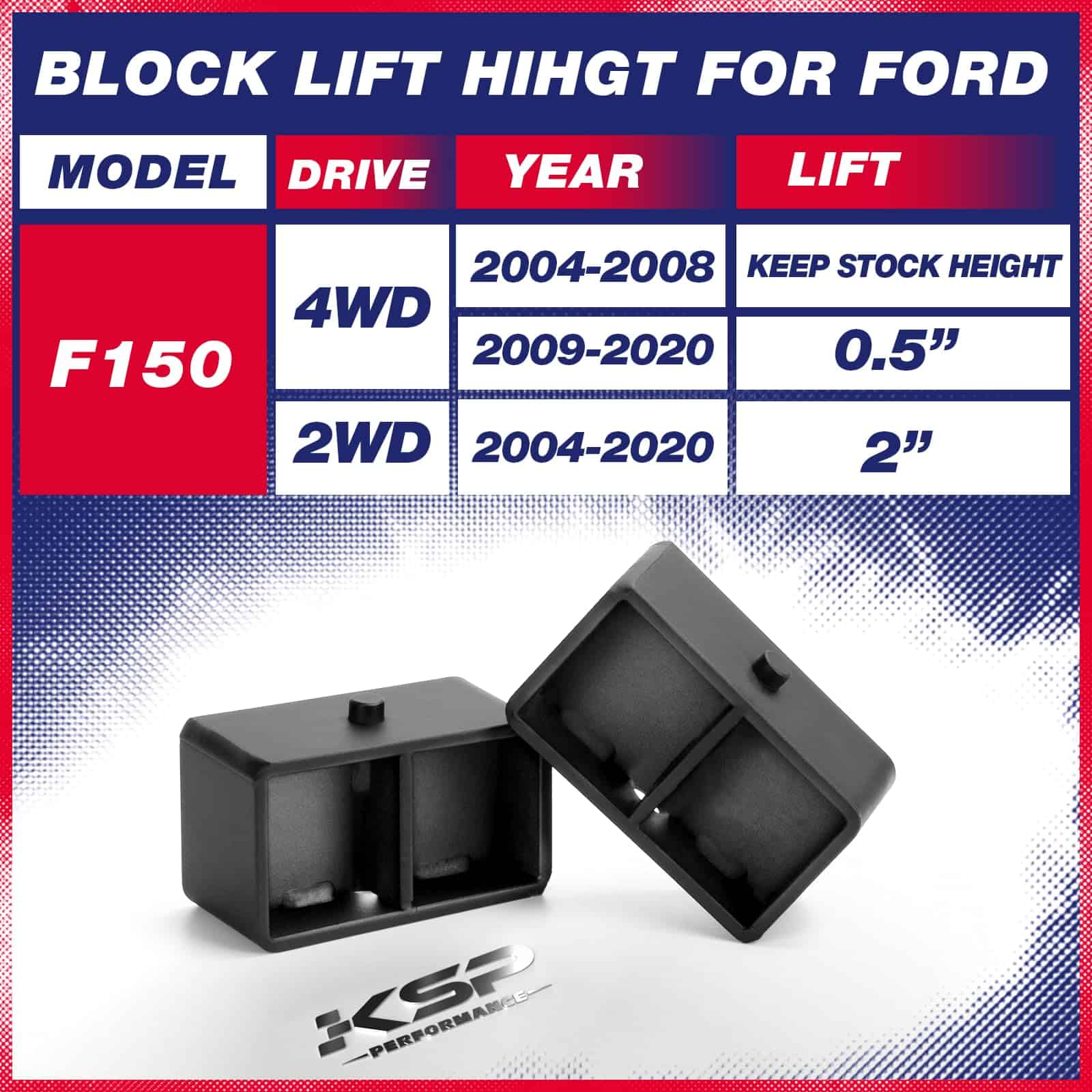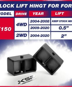 1. Vehículo: Adecuado para camionetas/pickups F150 2X2 4X4 2004-2020. La altura máxima de elevación de algunos modelos de brazo de control original es de 2″. Si ocurre fricción después de instalar los kits de elevación de 3″, se puede considerar reemplazar el brazo de control de 2-4″. Los kits de nivelación proporcionarán una elevación de 3 pulgadas en la parte delantera y 3 pulgadas en la parte trasera. Mantendrán su camioneta nivelada. La relación entre la altura de elevación y el grosor del kit no es 1:1 debido a la geometría de la suspensión. Se necesita un alineamiento después de la instalación.