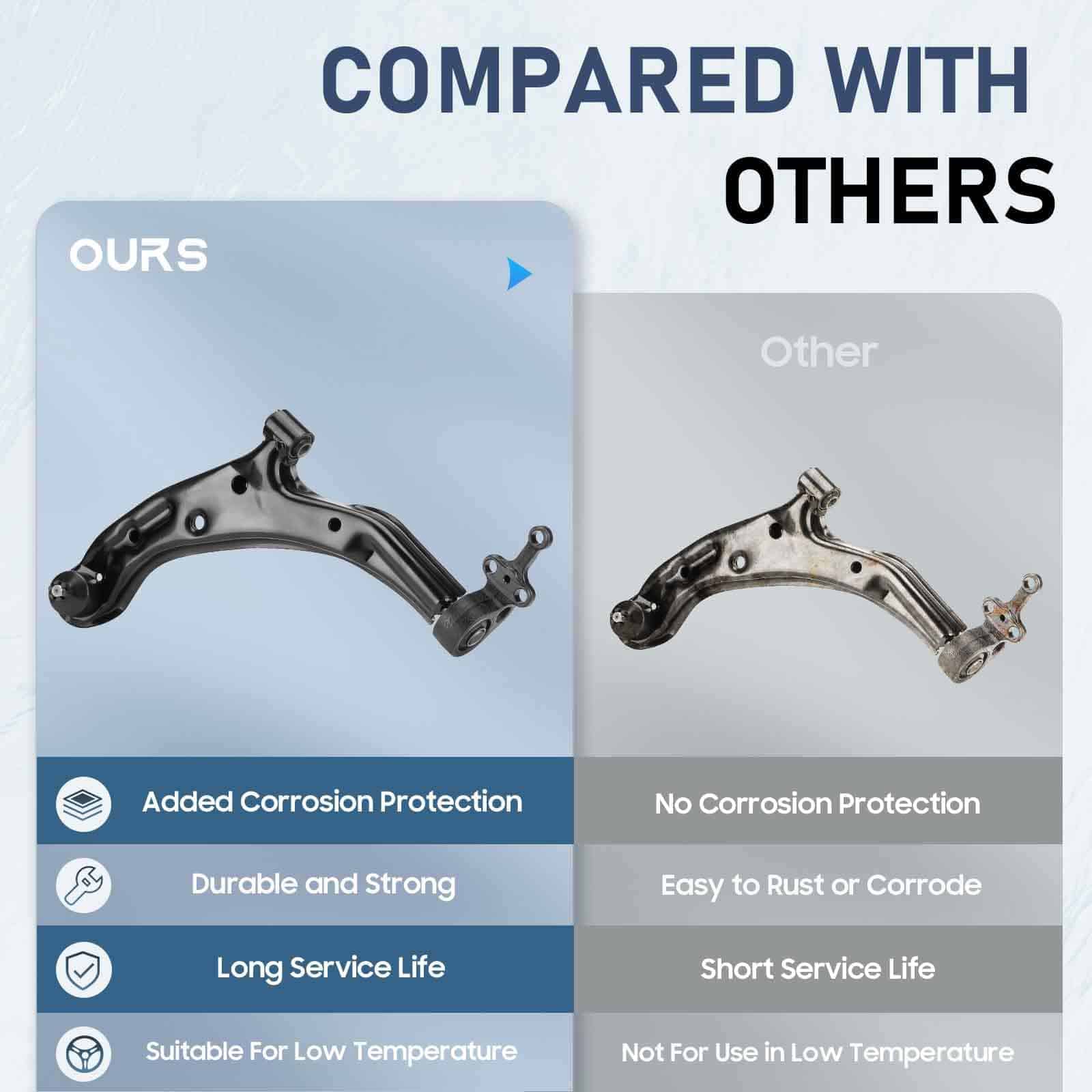 Kit de Suspensión de 8 Piezas para Control de Brazos Inferiores Delanteros Apto para Nissan Sentra 2001 2002 2003 2004 2005 2006 con Ensamble de Bujes de Bola, Enlaces de Barra Estabilizadora y Extremos de Barra de Dirección. Este kit está diseñado para proporcionar una solución completa de suspensión delantera para tu Nissan Sentra. Incluye 2 brazos de control inferiores delanteros con ensamble de bola, 2 enlaces de barra estabilizadora/frontal, 2 extremos de barra de dirección exteriores/frontales y 2 extremos de barra de dirección interiores/frontales. Compatibilidad: Este kit es apto para Nissan Sentra 2002-2006 (Excluye modelos SE-R) y Nissan Sentra 2001 (Excluye modelos SE con fecha de producción posterior a 3/01). Diseño: Los accesorios de brazo de control son un diseño original para reemplazo directo de piezas originales. Los números de reemplazo incluyen K620359, K620358, K9543, ES2814, EV380. Mejora la Conducción Segura: Cada componente de suspensión está hecho de aleación de alta calidad y es rigurosamente probado en impacto, corrosión, desgaste y fatiga por un equipo de ingenieros profesionales. ¡Garantiza un rendimiento perfecto y una conducción segura! Garantía: Contamos con una garantía de 12 meses para este kit de suspensión. Si tienes algún problema con el producto, contáctanos la primera vez. Nuestro servicio de atención al cliente profesional estará encantado de ayudarte.