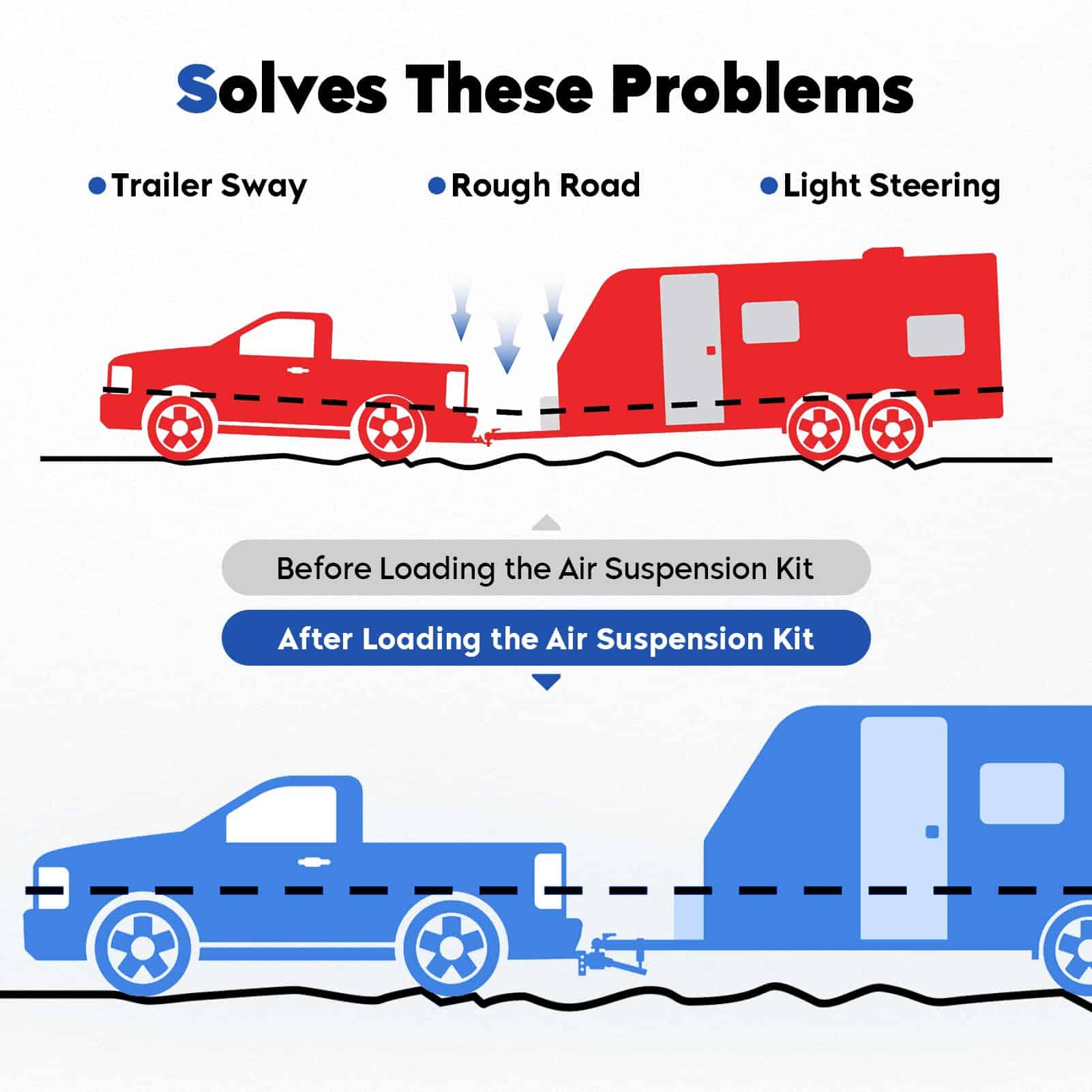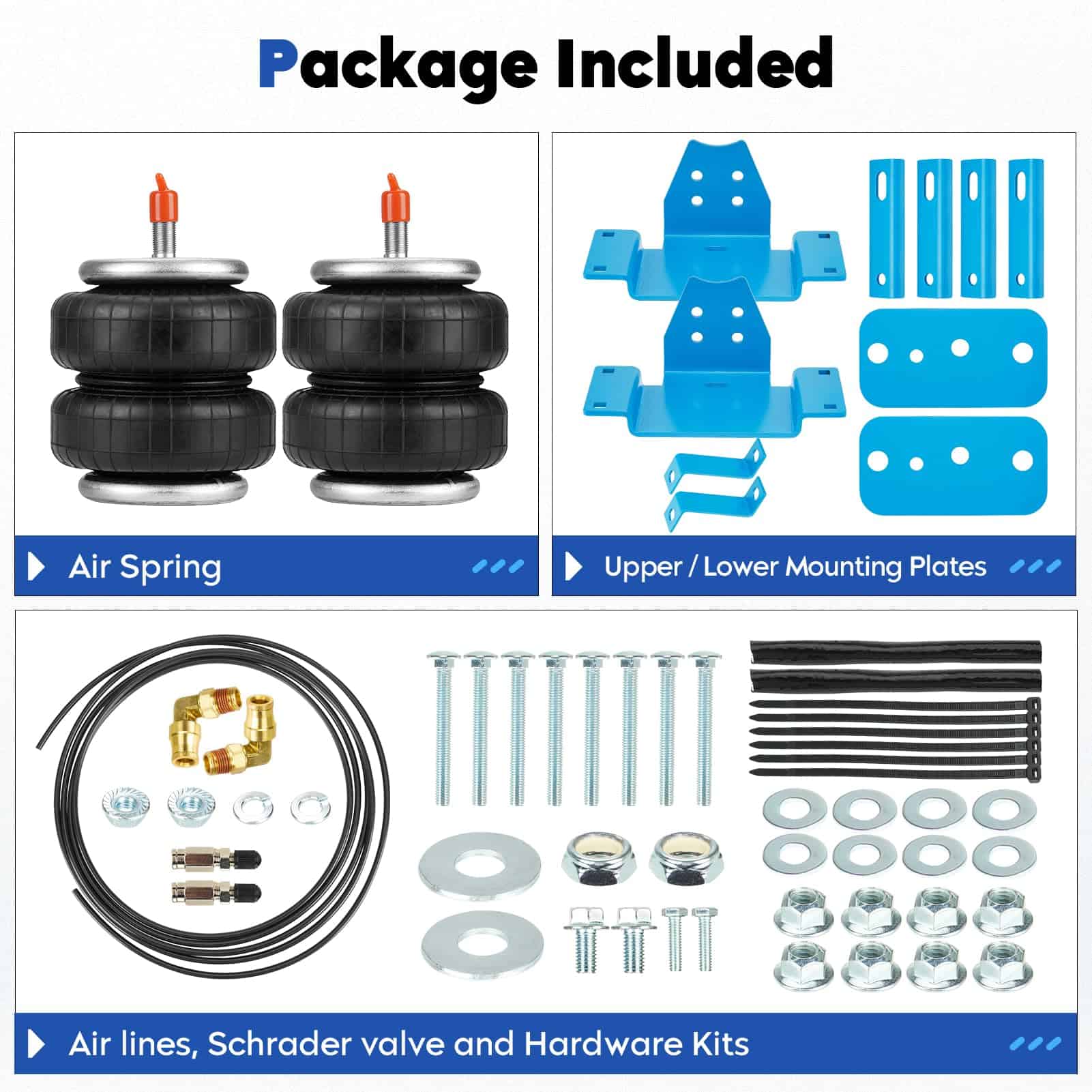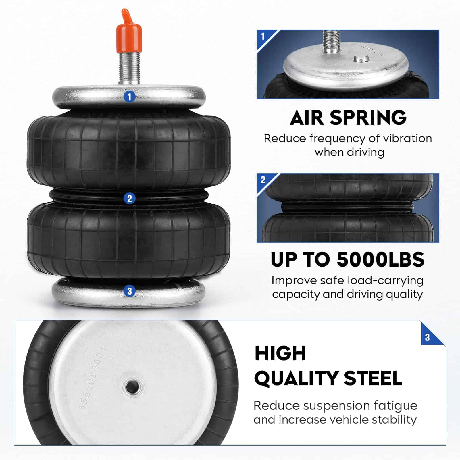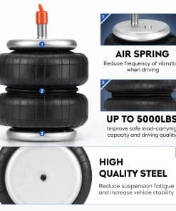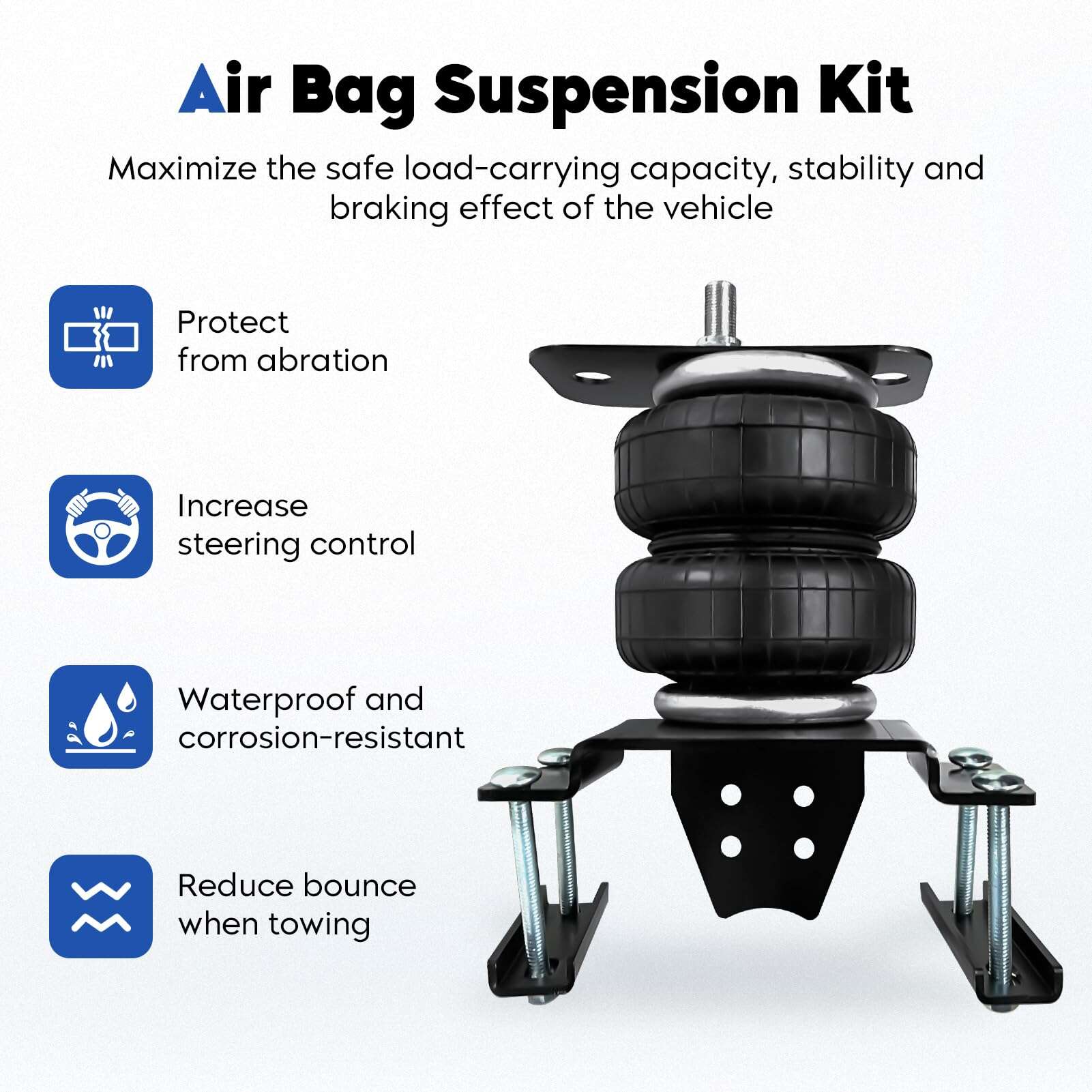 Acerca del Producto Estamos constantemente actualizando nuestros productos para brindar un servicio excepcional y productos a las personas que confían en nosotros. Los kits de muelles de ayuda de aire están hechos de materiales de alta calidad y diseño comprimido de aire para proporcionar un soporte fuerte. ¡Mejorará el control de dirección y frenado, y mejorará la comodidad de conducción! Compatible Con Compatible para Toyota Tundra 2WD 4WD 2007-2021 Número de OEM de Reemplazo Firestone 2445, W21-760-2445, W217602445 Incluye 2 bolsas de aire (azules), todos los soportes, manual de instalación, pernos y tuercas que necesitas para la instalación, válvulas de inflado, accesorios de codo y tubería. Características del Producto Capacidad de Nivelación de Carga: Nuestras bolsas de aire de ayuda proporcionan soporte de carga a través de la presión del aire. Puede ajustarse para cambiar las cargas y puede soportar hasta 5000 libras. Fácil de Instalar: Instalación de pernos, no es necesario perforar agujeros en el marco. El kit también viene con un manual de instalación con todas las instrucciones paso a paso. Durabilidad: Está hecho de materiales de alta calidad para proteger los muelles de aire de posibles abrasiones. Protección de la Carga: Use nuestra bolsa de aire auxiliar para agregar protección al remolcar o transportar cargas pesadas.