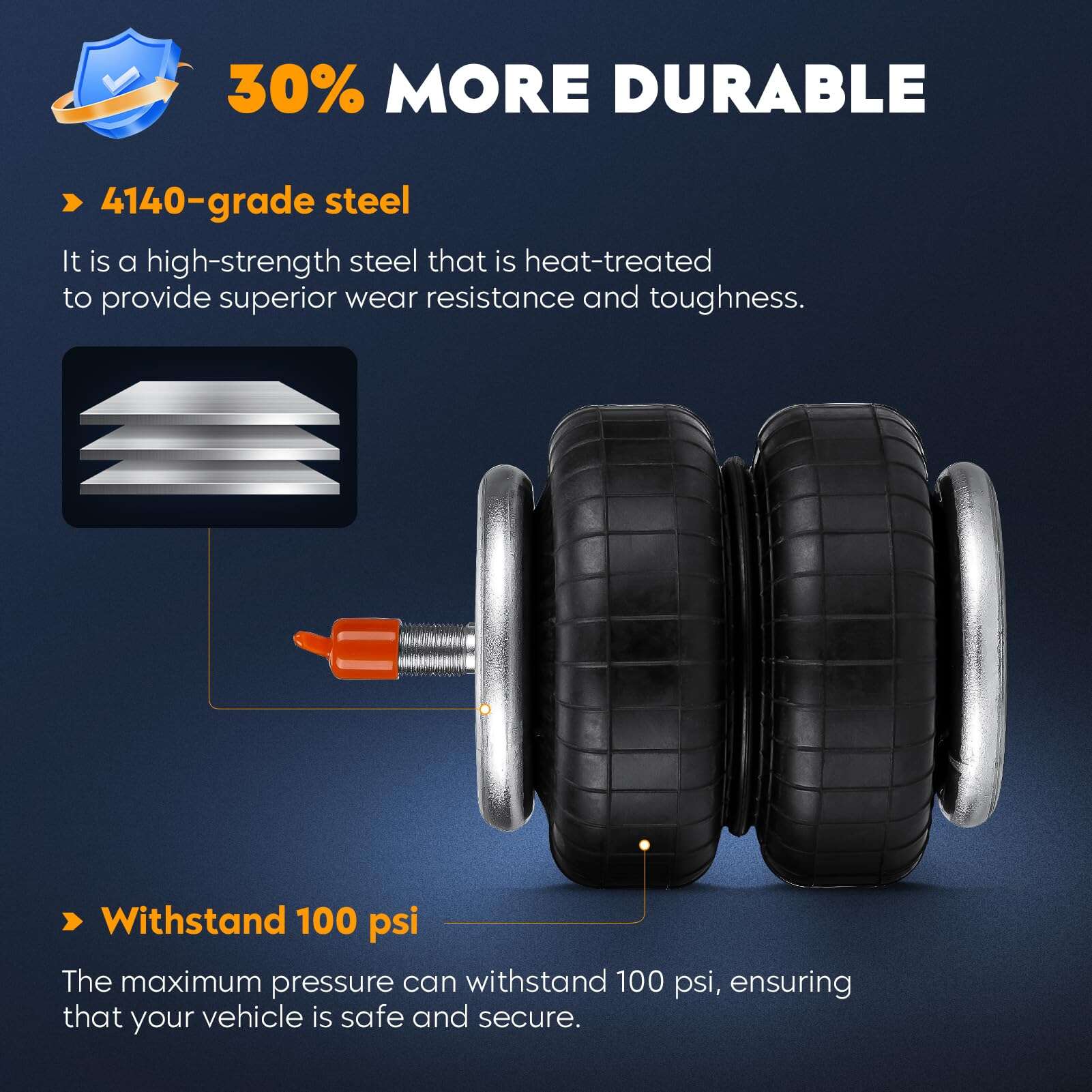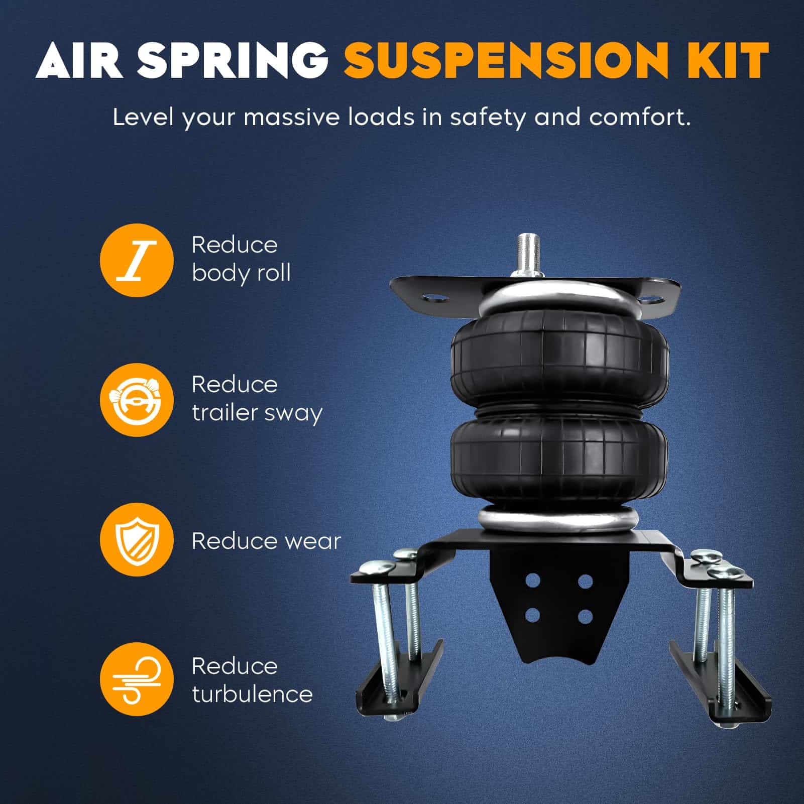 Este kit de suspensión de bolsas de resortes de aire traseras es perfecto para tu Toyota Tundra 2WD 4WD de los años 2007-2021. Reemplaza los números OEM Firestone 2445, Firestone W21-760-2445, y Firestone W217602445. Diseñado específicamente para la ubicación en el eje trasero, este kit ofrece una capacidad de 5,000 libras sin necesidad de perforación. El alto rendimiento de las bolsas de aire asegura una conducción suave y segura al absorber los golpes de la carretera y ajustarse según las diferentes cargas. Este producto viene con una garantía de un año y servicio de reemplazo. Si tienes preguntas o sugerencias, contáctanos para obtener más información sobre este kit de suspensión de alta calidad para tu Toyota Tundra.