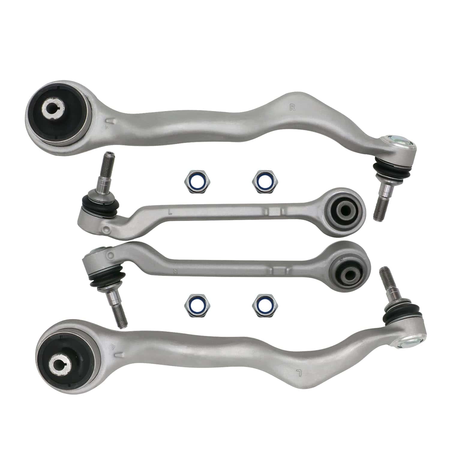 3. Paquete: 1x Brazo de control inferior delantero izquierdo, 1x Brazo de control inferior delantero derecho, 1x Brazo de control inferior trasero izquierdo, 1x Brazo de control inferior trasero derecho.