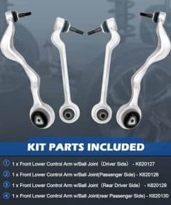 Este kit de suspensión de brazo de control inferior delantero es compatible con varios modelos de BMW, incluidos 325i, 328i, 330i, 335i, 128i, 135i y X1. Es importante destacar que solo es adecuado para modelos de tracción trasera de 2WD. El kit incluye 2 brazos de control inferior delantero y 2 brazos de control inferior trasero delanteros, lo que garantiza un reemplazo completo y preciso. Estos componentes son fundamentales para la suspensión del vehículo y aseguran un manejo suave y seguro. ¡Actualiza la suspensión de tu BMW con este kit de calidad!