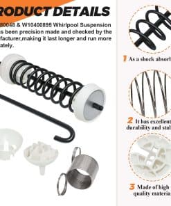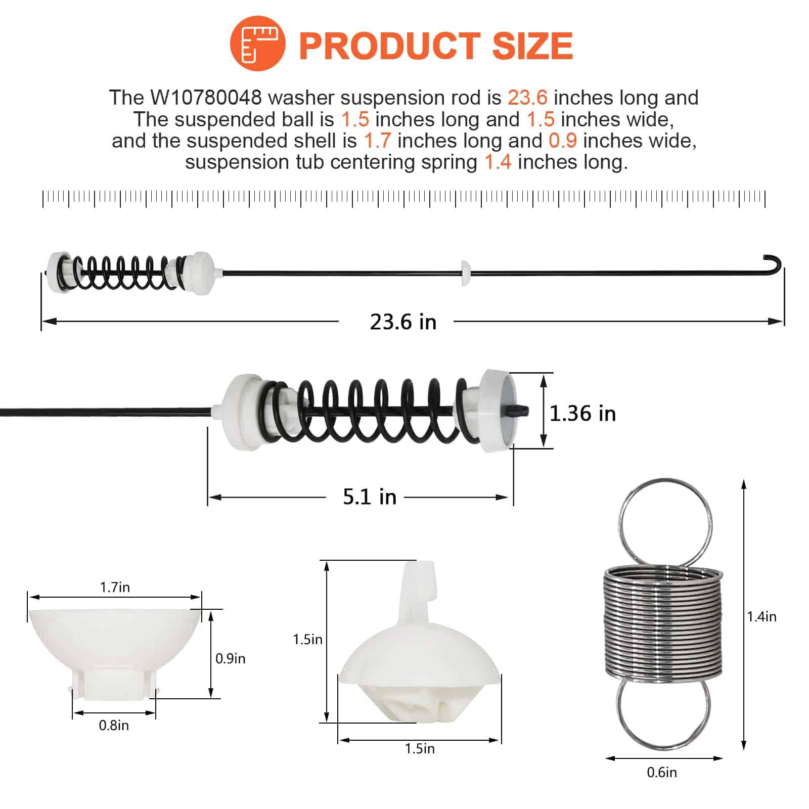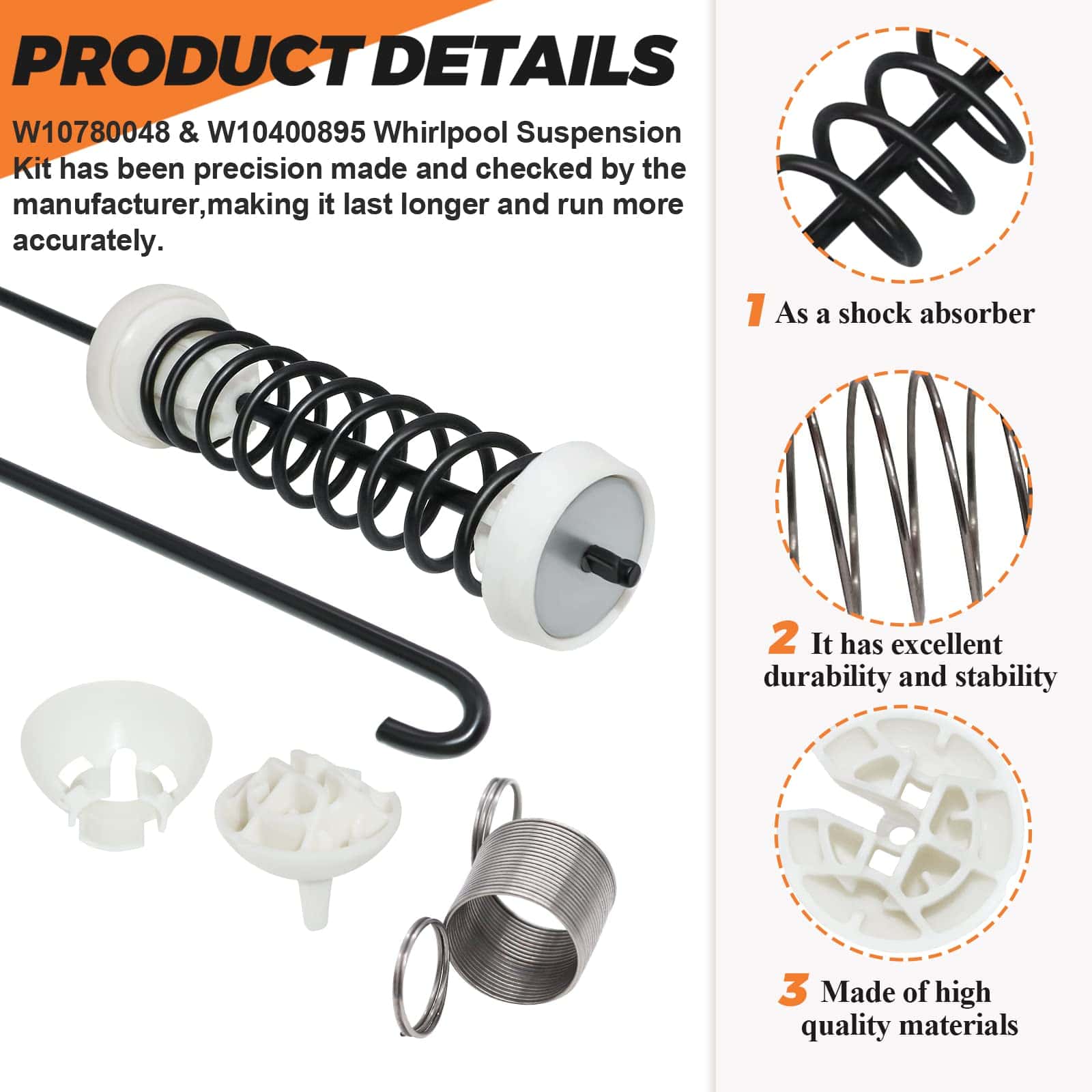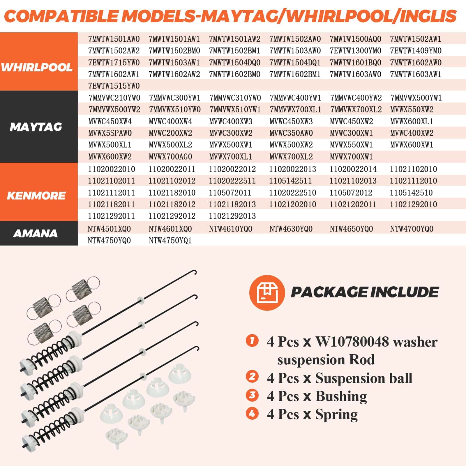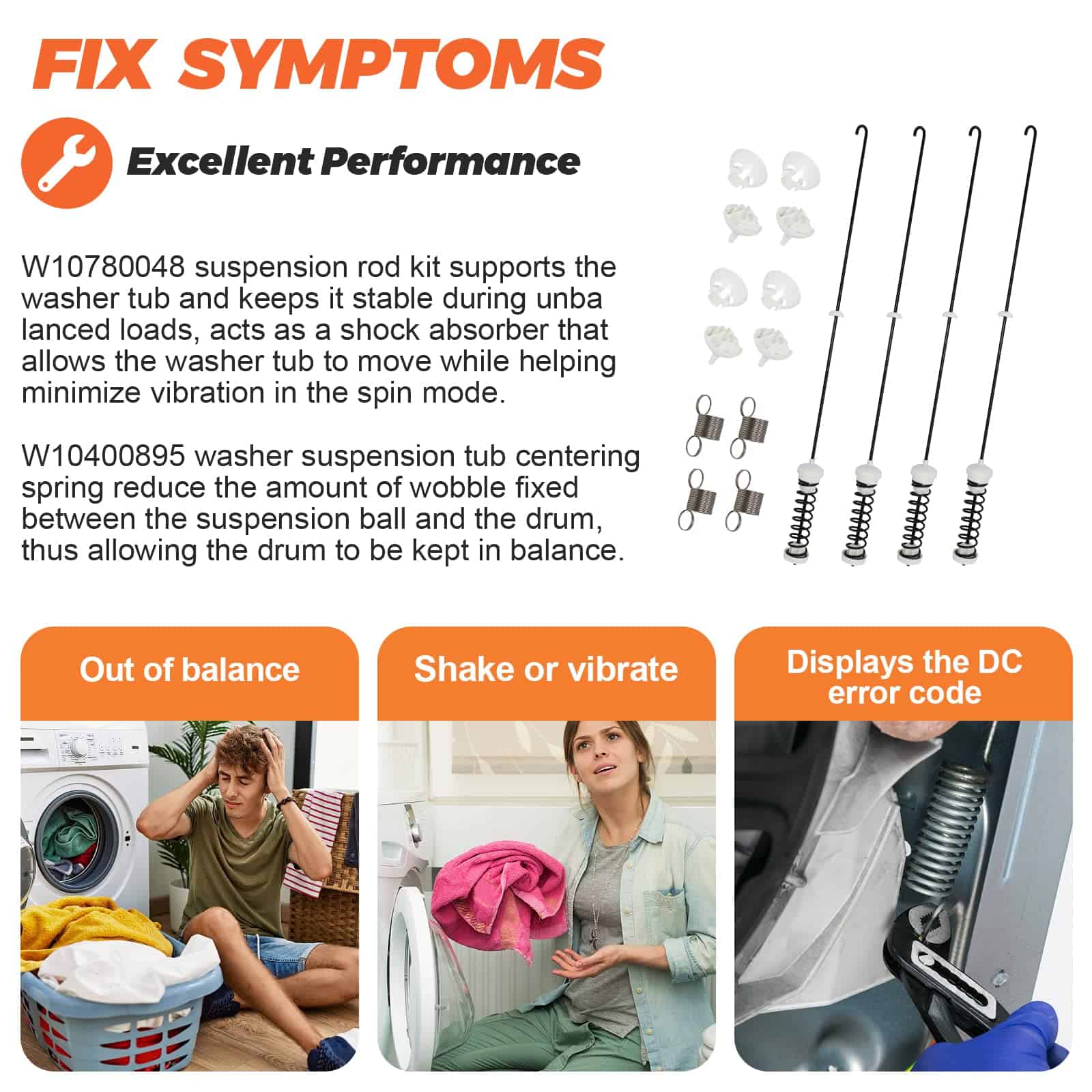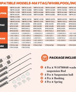 Kit de varillas de suspensión w10780048 y muelles de suspensión de lavadora w10400895 reemplazo para lavadoras Admiral, Amana, Crosley, Kenmore, Maytag y Roper. Incluye todas las piezas de repuesto necesarias para completar la instalación estándar de tu lavadora.