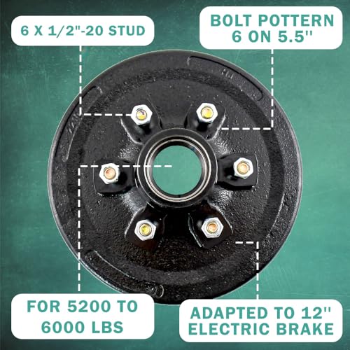 Kit de Tambor de Freno de Remolque JADODE 12″x2″, Círculo
