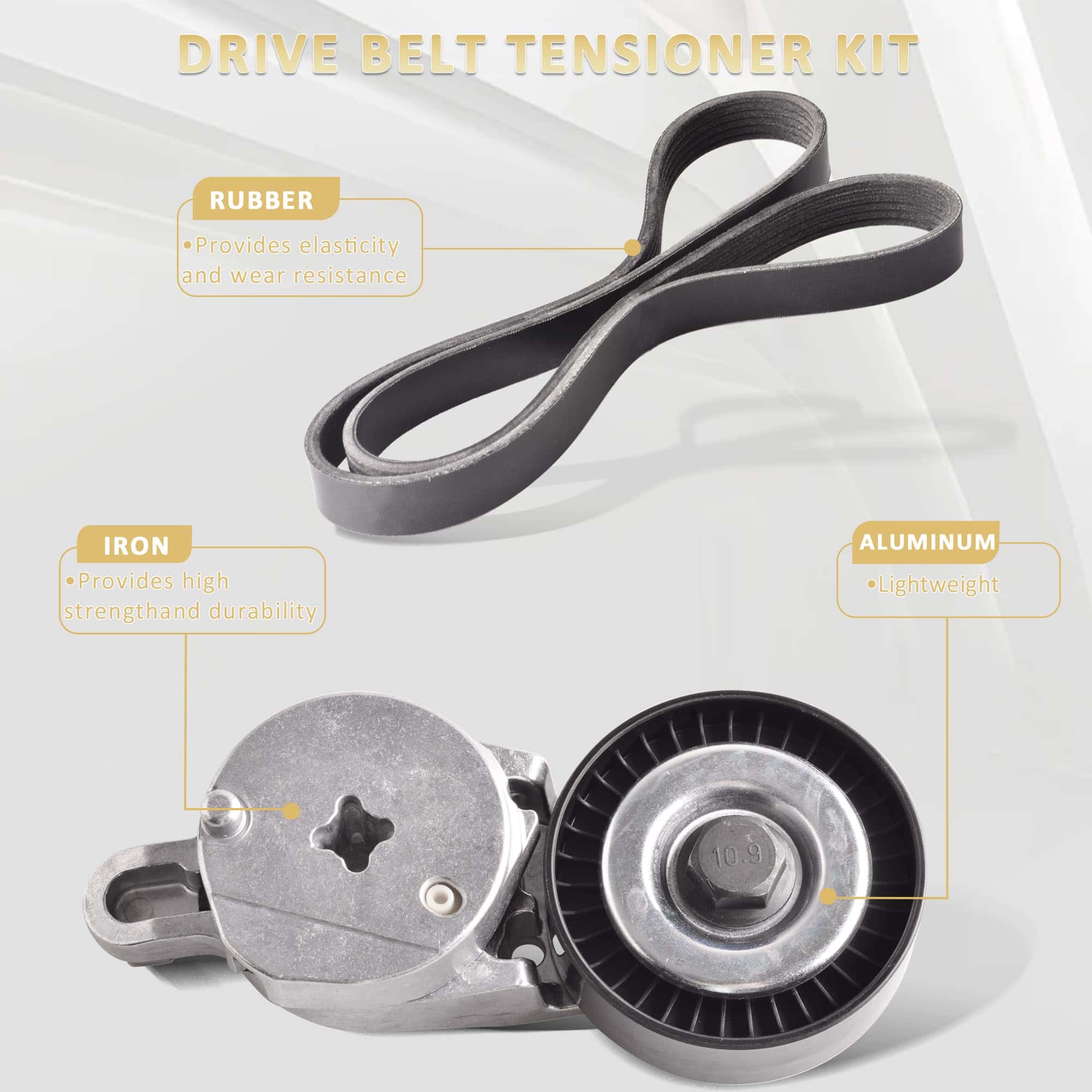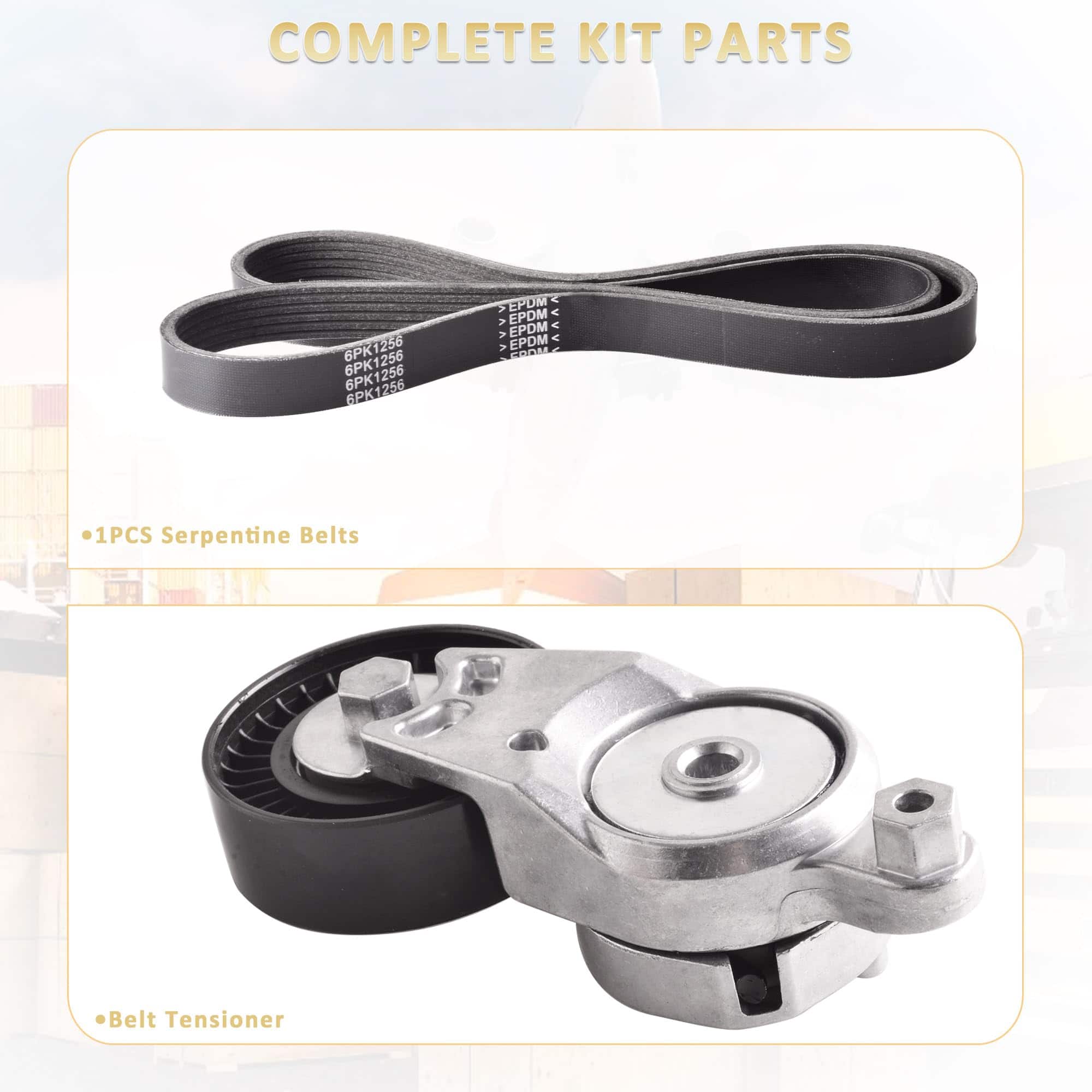 Kit de Tensor de Correa de Transmisión Compatible para Toyota Camry/RAV4/Venza/Sienna/Highlander, Compatible para Lexus NX300h 2015-2018. Reemplace el número de pieza de la correa de transmisión: 6PK1256, 252122B020, 252122B140, 9091602667, 9091602668, 90916A2021; número de pieza del tensor de correa: 1662036010, 166200V020, 166200V040. Compatible para Toyota Camry 2012-2017/RAV4 2009-2018/Venza 2009-2015/Sienna 2011-2013/Highlander 2009-2019, Compatible para Lexus NX300h 2015-2018. Los materiales seleccionados tienen excelente resistencia a la abrasión, calor y corrosión, garantizando que el kit funcione de manera confiable durante largos períodos de tiempo en entornos de motor difíciles. Asegure que la correa de transmisión siempre mantenga la tensión adecuada, soporte la correa y guíela para que se ejecute en un camino predeterminado, y reduzca la vibración y el ruido generado por la correa durante la operación. Si tiene alguna pregunta o necesita información de ajuste para su vehículo, contáctenos. Le aseguramos que obtendrá la mejor solución y servicio.