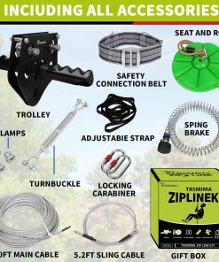 El kit de tirolesa TRSMIMA es el equipo de exterior más seguro y duradero, ¡cuenta con un cinturón de seguridad y una cuerda de sujeción!
