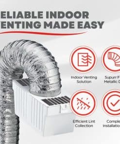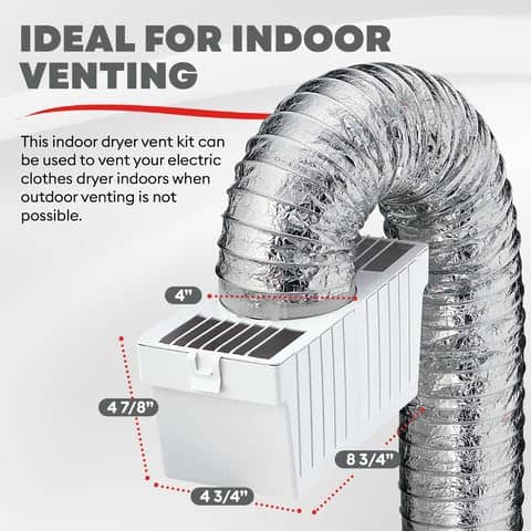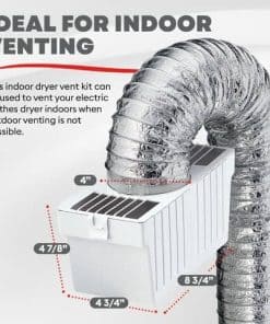 1. Solución de Ventilación de Secadora Interior: Diseñado para ventilar secadoras eléctricas en interiores cuando la ventilación exterior no es posible, este kit es perfecto para apartamentos, condominios, vehículos recreativos y sótanos. No es compatible con secadoras de gas.