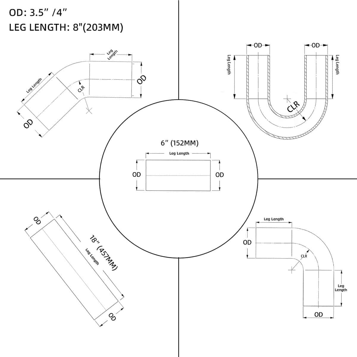 Kit de tuberías de intercooler de aluminio de 3.5″ de 10