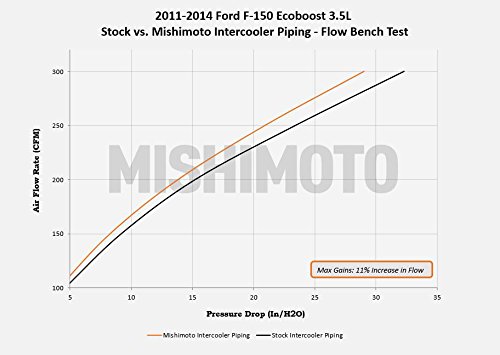 El kit de tuberías de intercooler Mishimoto para la Ford F-150 EcoBoost 2011-2014 es una mejora ideal en fiabilidad y rendimiento. El kit de Mishimoto cuenta con tuberías laterales frías y calientes en aluminio pulido o negro con arrugas. Acompañado por acoplamientos de silicona con tecnología DuraCore, las tuberías intercooler para la Ford F-150 EcoBoost de Mishimoto están diseñadas para eliminar curvas restrictivas mientras mejoran la durabilidad y el flujo de aire. En comparación con la silicona normal, DuraCore proporciona una resistencia superior al calor, presión, combustible y aceite. Esto aumenta efectivamente la vida útil de nuestros acoplamientos al evitar fugas y estallidos. Para agregar aún más fiabilidad, este kit incluye abrazaderas de Tornillo en ‘T’ de tensión constante de Mishimoto para una instalación precisa y segura. Actualice al kit de tuberías de intercooler Mishimoto para la Ford F-150 EcoBoost 2011-2014 y brinde a su camión el flujo de aire eficiente y desimpedido que necesita para obtener hasta 15 caballos de fuerza y 21 libras/pie de torque más. Para mejorar aún más su sistema de aire de carga, combine este kit de tuberías con el intercooler de rendimiento Mishimoto para la Ford F-150 EcoBoost 2011-2014. Por supuesto, este kit está respaldado por nuestra garantía de Mishimoto, por lo que nunca tendrá que preocuparse por comprar otro kit de tuberías intercooler nuevamente.