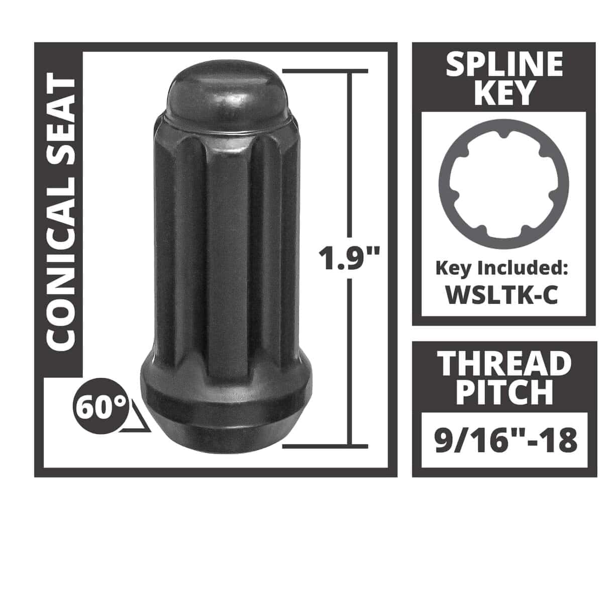 Kit de Tuercas de Seguridad Spline de Acorn de 9/16″ 1.9″
