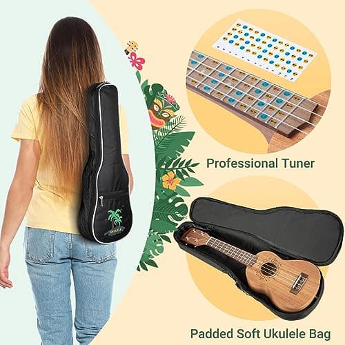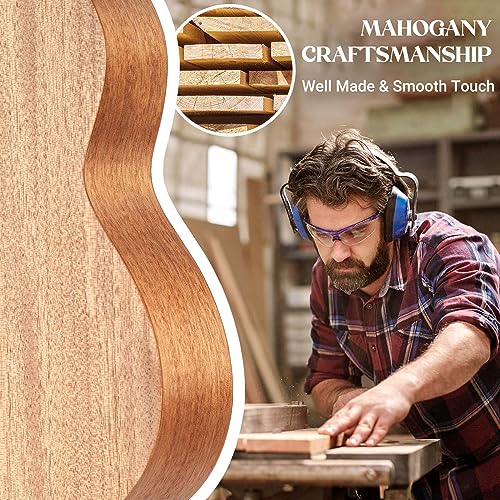 1. Espalda en Forma de Arco: El diseño acústico del cuerpo del ukelele, con resonancia equilibrada. El grosor, la distancia y el arco curvado de la tabla de madera hacen que la reflexión del sonido sea más concentrada y la calidad del sonido más potente. 2. Material de Caoba de Alta Calidad: le da un tono medio-grave completo y potente para que el tono cálido de la caoba se exprese completamente. 3. Paquete Práctico: Incluye estuche, correa arcoiris, pegatinas de diapasón de ukelele, paquete ideal para principiantes. 4. Instrumento Ideal para Principiantes: Es adecuado para todos los amantes de la música que quieran probar el fingerstyle y cantar. Además, es fácil de transportar. 5. Un Regalo que a Todos les Encantará: Un instrumento fácil de aprender, apto para aquellos interesados en la música. Puede ser un regalo íntimo para todas las edades.