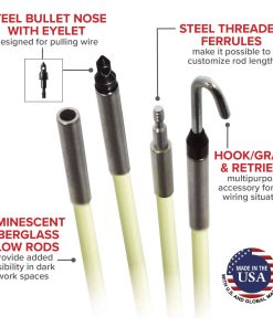 Con este kit de varilla de fibra de vidrio Jameson 7-8-IK, obtendrás un set de dos varillas de 5 pies x 1/4″, dos varillas de 2.5 pies x 1/4″, cuatro varillas de 5 pies x 3/16″ que se ensamblan en una longitud total de 35 pies. Las varillas son altamente resistentes y flexibles, lo que te permite manejar curvas fácilmente sin preocuparte por que se rompan. Con un radio de curvatura mínimo de 6 pulgadas y una resistencia a la tracción de 750 libras, estas varillas son ideales para una variedad de aplicaciones. Los ferrules de acero duraderos te permiten personalizar la longitud de la varilla según tus necesidades. Además, el kit incluye dos narices de bala con ojal, dos ganchos y un pincel para mayor versatilidad y conveniencia. Con un diámetro de 1/4″, esta varilla es la más rígida utilizada para largos tramos, asegurando un rendimiento óptimo en cada uso.