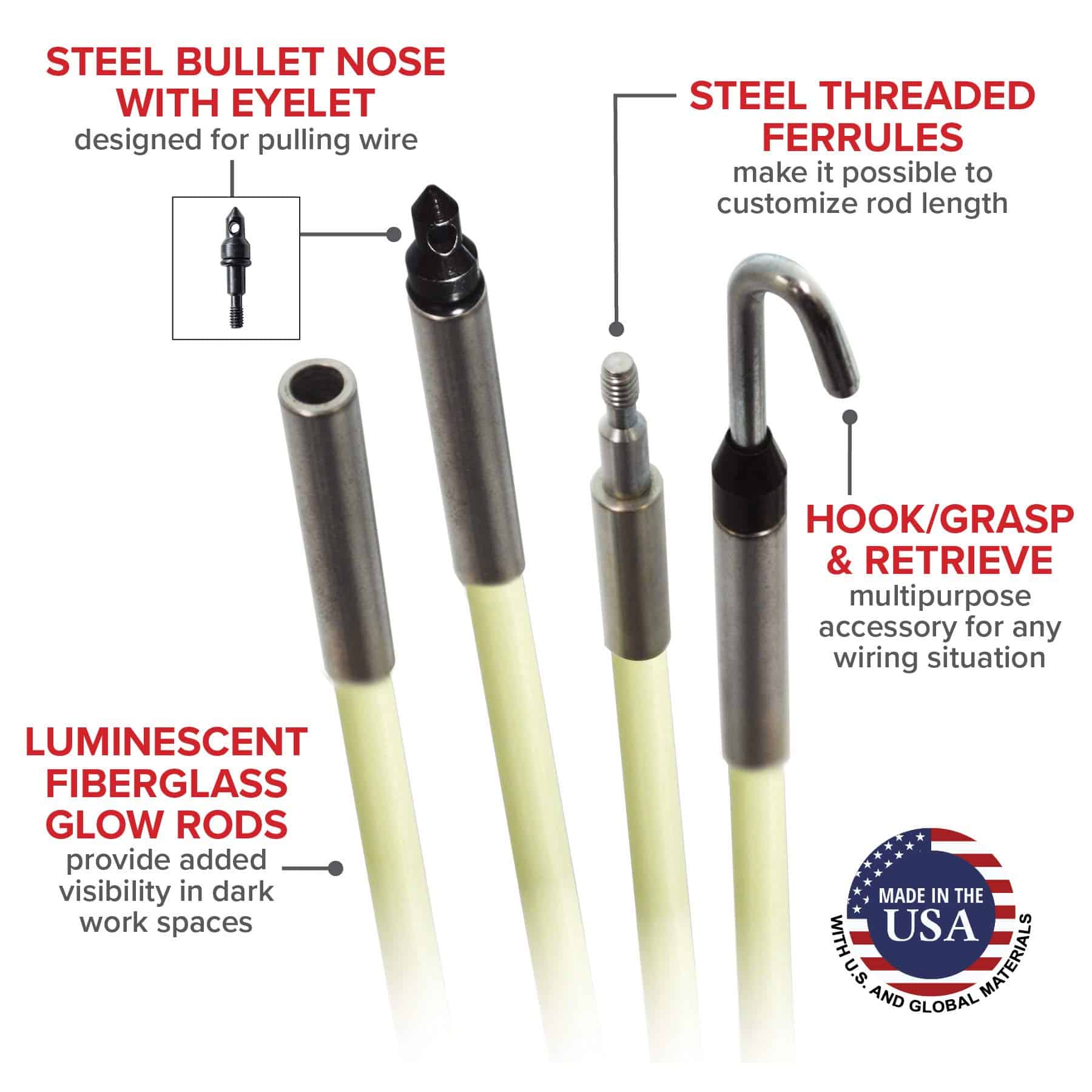 Kit de Varilla de Fibra de Vidrio Jameson 7-8-IK, 35′