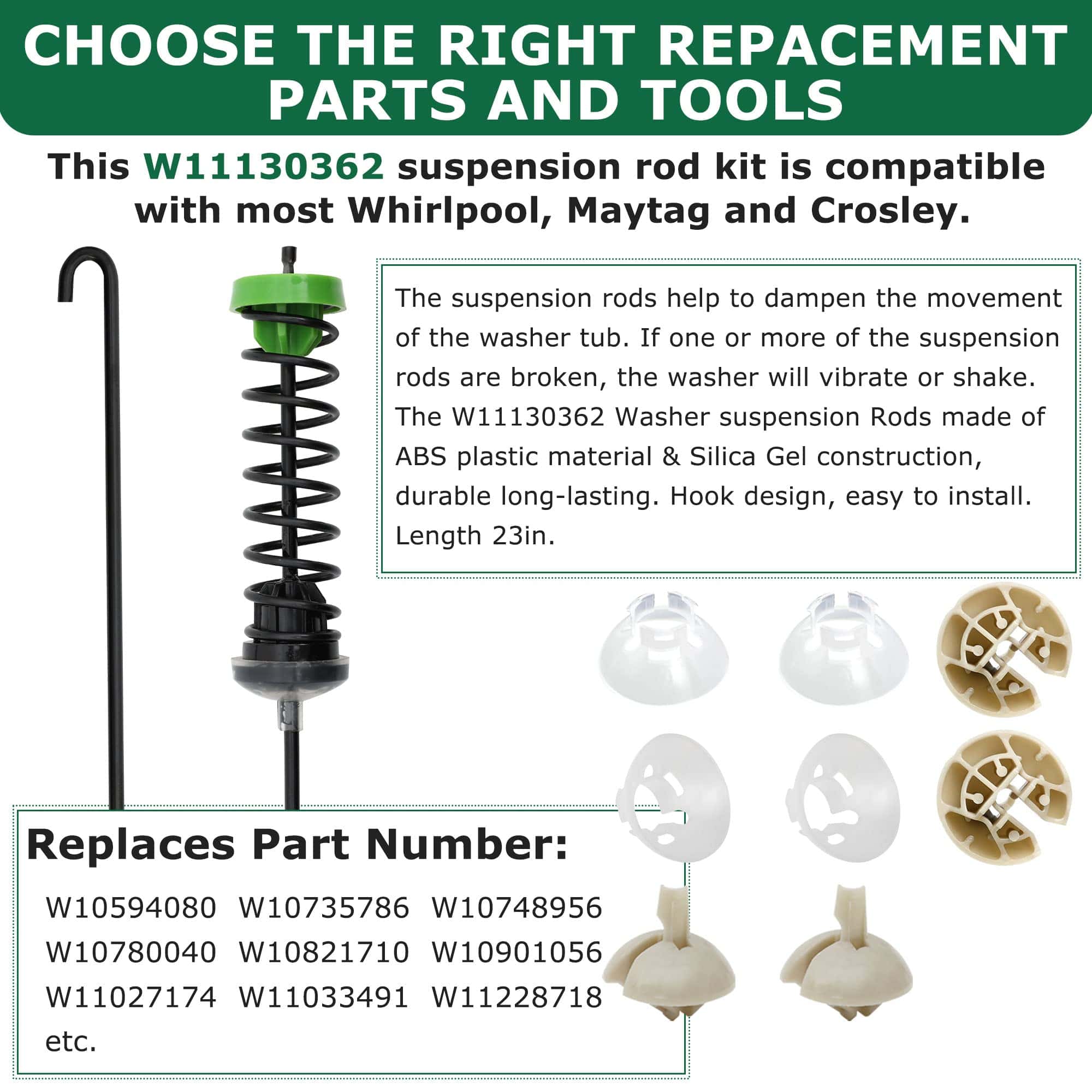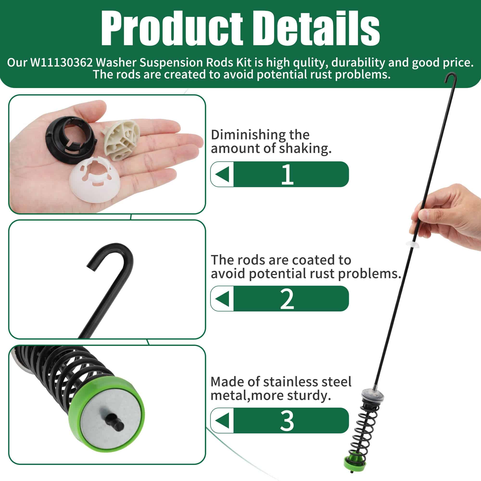 Kit de Varilla de Suspensión de Lavadora W11130362 Repuesto