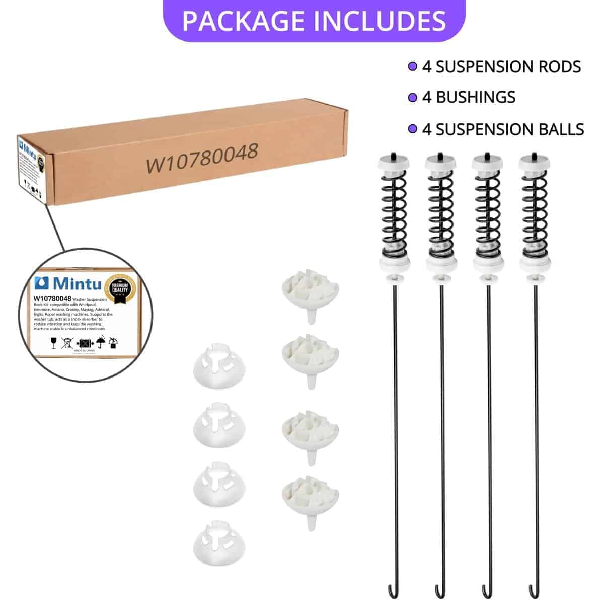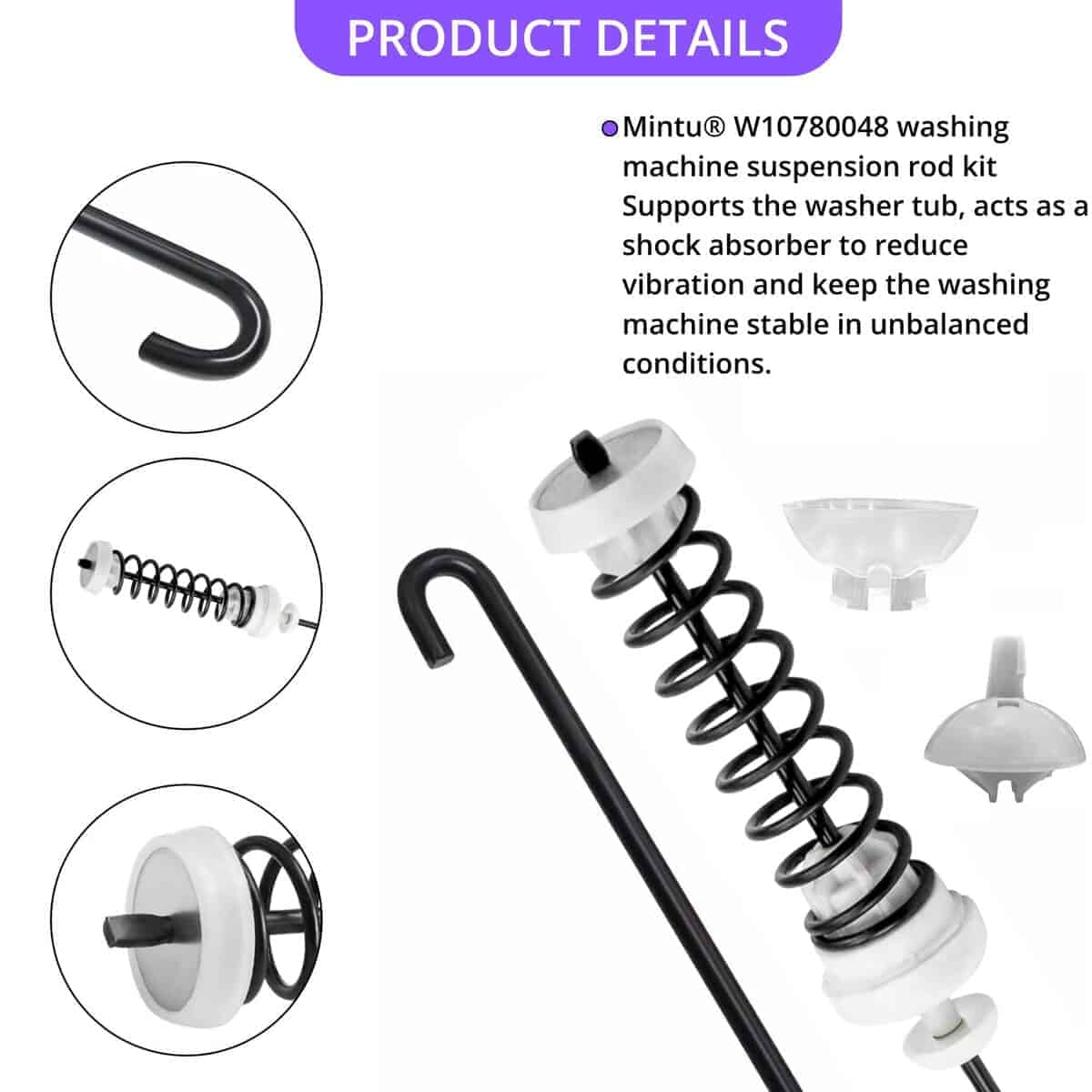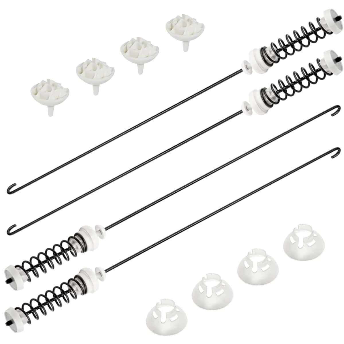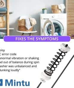 El kit de varilla de suspensión actualizado W10780048 ayuda a estabilizar la tina de lavado y mantener el equilibrio durante el funcionamiento de la lavadora, reduciendo las vibraciones en la máquina. Si una o más varillas de suspensión en su lavadora W10780048 fallan, la lavadora puede moverse o vibrar excesivamente. Las varillas de suspensión defectuosas son comúnmente la causa del error de carga desequilibrada ‘UL’ en máquinas de estilo Cabrio. La inspección y sustitución oportuna de las varillas de suspensión puede ayudar a minimizar estos problemas. Nuestras varillas de suspensión para lavadoras W10780048 ofrecen calidad, durabilidad y un precio económico. Antes de instalar las varillas de suspensión de la lavadora W10780048, asegúrese de desconectar la electricidad y el suministro de agua. Se recomienda llevar guantes de trabajo para proteger las manos. Puede ver un video de instalación para guiarlo a través del proceso. Si no está seguro de si el kit de varilla de suspensión W10780048 es compatible con su lavadora, no dude en contactarnos para obtener ayuda.