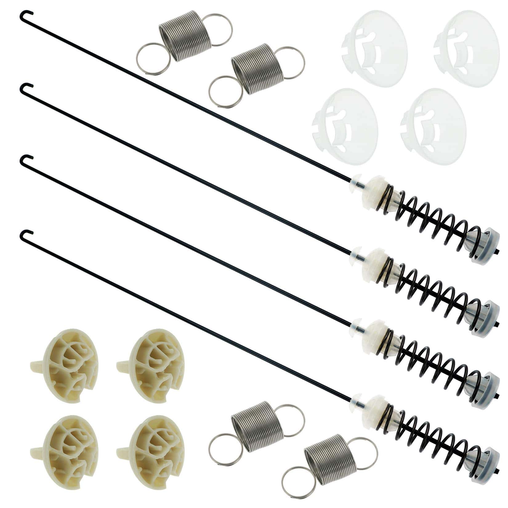 El kit de varillas de suspensión para lavadora W10780048 mantiene el equilibrio de la tina de lavado de la lavadora para reducir la vibración y el temblor. El resorte de suspensión W10400895 es para lavadoras. Compatible con las marcas Whirlpool y Amana. Paquete incluye: 4 x Varillas de suspensión, 4 x Casquillos, 4 x Bolas de suspensión, 4 x Resortes de suspensión W10400895. Elige nuestro kit de varilla de suspensión W10780048 y el resorte de lavadora W10400895 para ahorrar tiempo y dinero ahora.