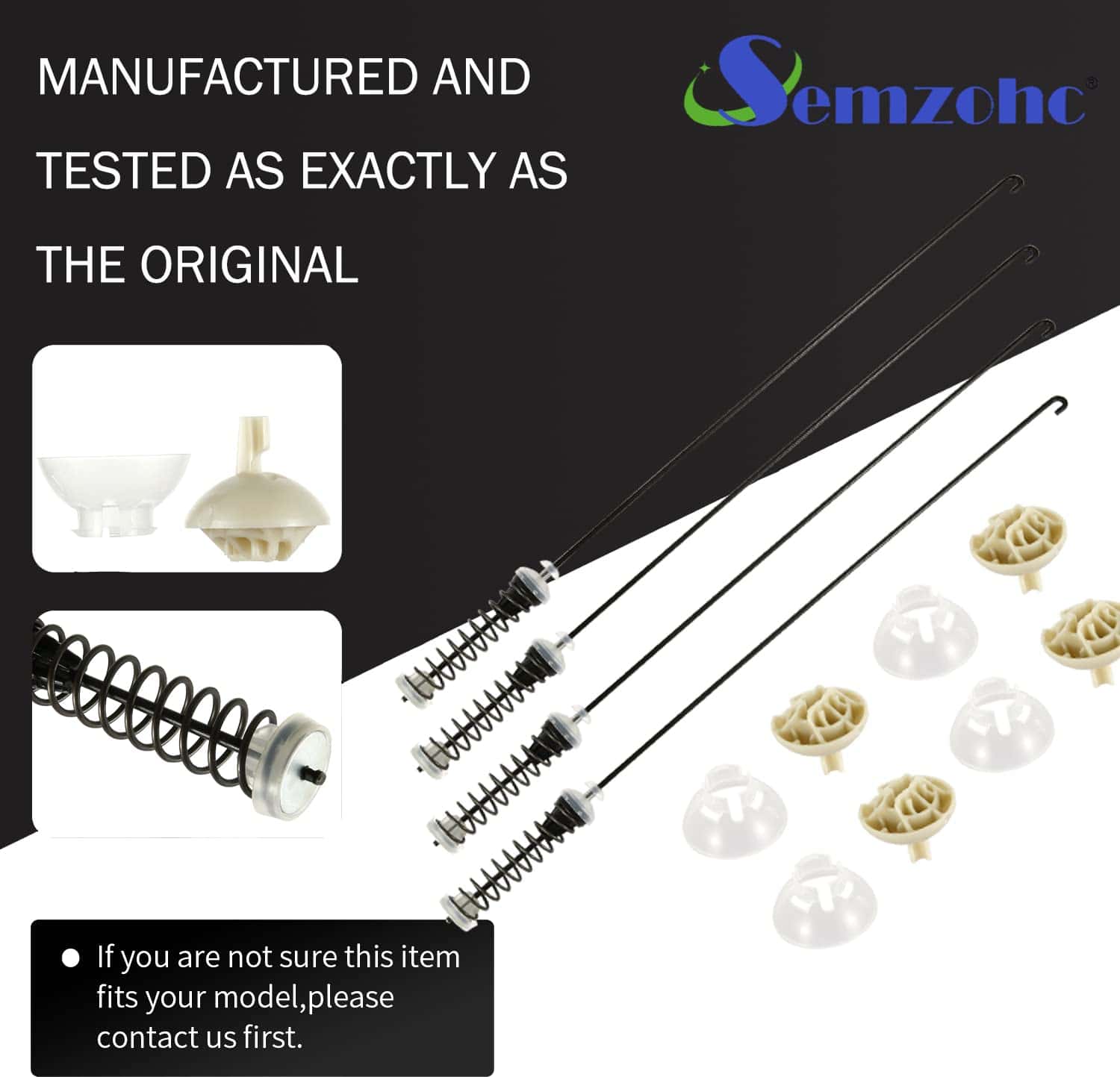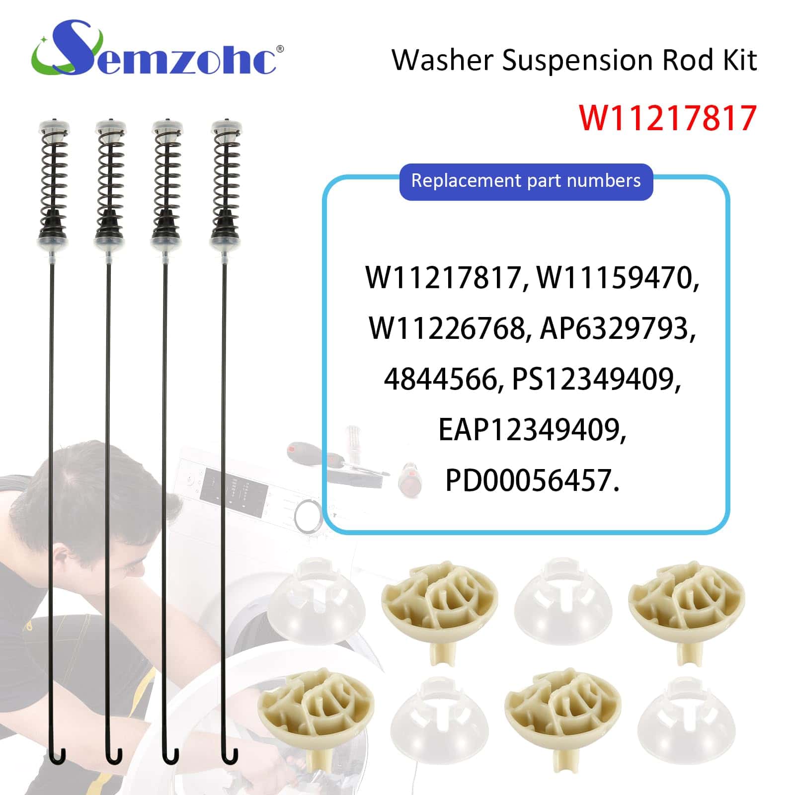 El Kit de Varilla de Suspensión para Lavadora W11217817 soporta la tina de la lavadora y la mantiene estable durante cargas desequilibradas. Si tu lavadora tiembla y se mueve, necesitas verificar si el kit de varilla de suspensión de la lavadora está dañado. Hemos mejorado el material para mejorar la rigidez de la varilla de suspensión, haciéndola más durable y con una vida útil más larga. Al reparar en lugar de comprar uno nuevo, es una manera valiosa de vida que puede restaurar tu lavadora para que funcione. Este kit de varilla de suspensión de lavadora reemplaza a los números de parte W11217817, W11159470, W11226768, AP6329793, 4844566, PS12349409, EAP12349409, PD00056457. Compatible con lavadoras Whirlpool, Amana, Kenmore, Inglis, Crosley, May-tag, May-tag MVWC465HW0, MVWC465HW1, MVWC465HW2, MVWC465HW3, MVWC465HW4, 4KMVWC410JW0, 4KMVWC410JW1, 4KMVWC420JW0, 4KMVWC420JW1, 4KMVWC430JW0, 4KMVWC430JW1, 4KMVWC440JW0, 4KMVWC440JW1, 7MMVWC465JW0, Amana NTW4519JW0, NTW4519JW1, NTW4519JW2, 4KNTW3100JW0, 4KNTW3100JW1, 4KNTW3200JW0, 4KNTW3200JW1, 4KNTW3300JW0, 4KNTW3300JW1, Kenmore 11020362810, 11025122810, 11020362811, 11025122811, 11020362812, 11020362813. Antes de la entrega, hemos verificado la calidad de este kit de varilla de suspensión para lavadora W11217817 y el fabricante ha realizado pruebas completas para garantizar que el kit de suspensión para lavadora Kenmore recibido por cada cliente pueda ser utilizado normalmente. Garantía de quince años: si encuentras problemas de calidad con este reemplazo de kit de varilla de suspensión para lavadora durante el uso, por favor contáctanos. Resolveremos tus problemas en un plazo de 12 horas y reemplazaremos las nuevas piezas de la lavadora de forma gratuita.