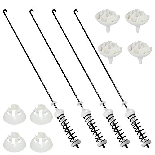 TOMOON Kit de Varillas de Suspensión para Lavadora W10780048 (4 pcs) Compatible con Lavadoras Whirlpool Kenmore Este kit de varillas de suspensión se utiliza en Lavadora Automática. Las varillas de suspensión soportan la tina de lavado de la lavadora y la mantienen estable durante cargas desequilibradas. El paquete incluye: 4 varillas de suspensión w10780048, 4 bolas de suspensión, 4 casquillos. Longitud 60 cm. Pasos de instalación: ¡Instaló las varillas de suspensión en pocos minutos y la lavadora funcionará de maravilla! ¡Asegúrese de quitar toda el agua de la máquina antes de colocarla boca abajo para reemplazar la suspensión y tenga cuidado de no cortarse con los bordes metálicos afilados de la máquina! ¡Use guantes para proteger sus manos! Quite 2 tornillos en la parte trasera y deslice la parte superior hacia adelante. Acuéstese de costado apoyado por una bolsa de dormir. Quite 2 muelles a la vez. Quite 2 muelles de la misma manera. Use cinta adhesiva para mantener la tapa cerrada de lo contrario, dedos rotos, reemplace 2 tornillos traseros, ¡listo! Síntomas aplicables: Problema de sacudida violenta, Ruidoso, Mal equilibrado durante el centrifugado, Las varillas de suspensión fallan, Modelos reemplazables: Whirlpool—7EWTW1300YM0, 7EWTW1409YM0, 7EWTW1515YW0, 7EWTW1715YW0, 7MWTW1500AQ0, 7MWTW1501AW0, 7MWTW1501AW1, 7MWTW1501AW2, 7MWTW1502AW0, 7MWTW1502AW1, 7MWTW1502AW2, 7MWTW1502BM0, 7MWTW1502BM1, 7MWTW1503AW0, 7MWTW1503AW1, 7MWTW1504DQ0, 7MWTW1504DQ1, 7MWTW1601BQ0, 7MWTW1602AW0, 7MWTW1602AW1, 7MWTW1602AW2, 7MWTW1602BM0 y más. NOTA: Si no encuentra el modelo que necesita, contáctenos. ¡Averiguaremos si este producto es adecuado para su Kit de Varillas de Suspensión para Lavadora W10780048 y le informaremos lo antes posible!