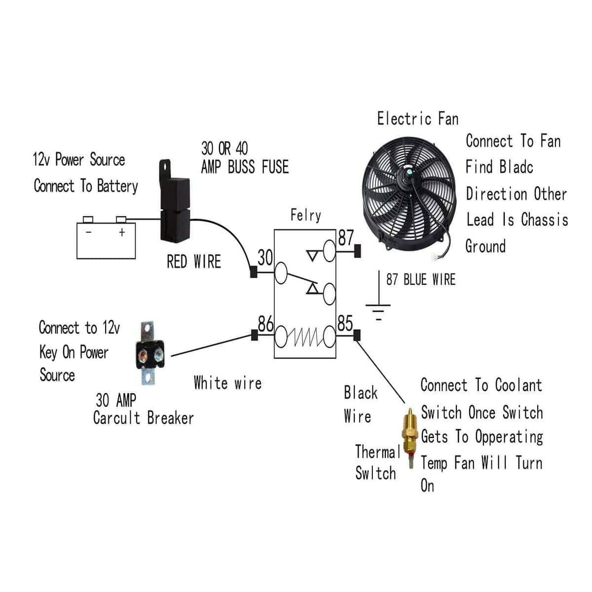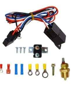 Paquete Incluye (1) – Termostato de 3/8″ NPT enroscable (1) – Adaptador de 1/2″ NPT (1) – Arnés de cables con montaje (1) – Relé de 40 amperios (1) – Interruptor de circuito de 30 amperios (3) – Terminales de anillo pequeños (1) – Terminal de anillo grande (1) – Tornillo de montaje del arnés (2) – Conectores de empalme (2) – Tornillos de chapa (1) – Conector hembra