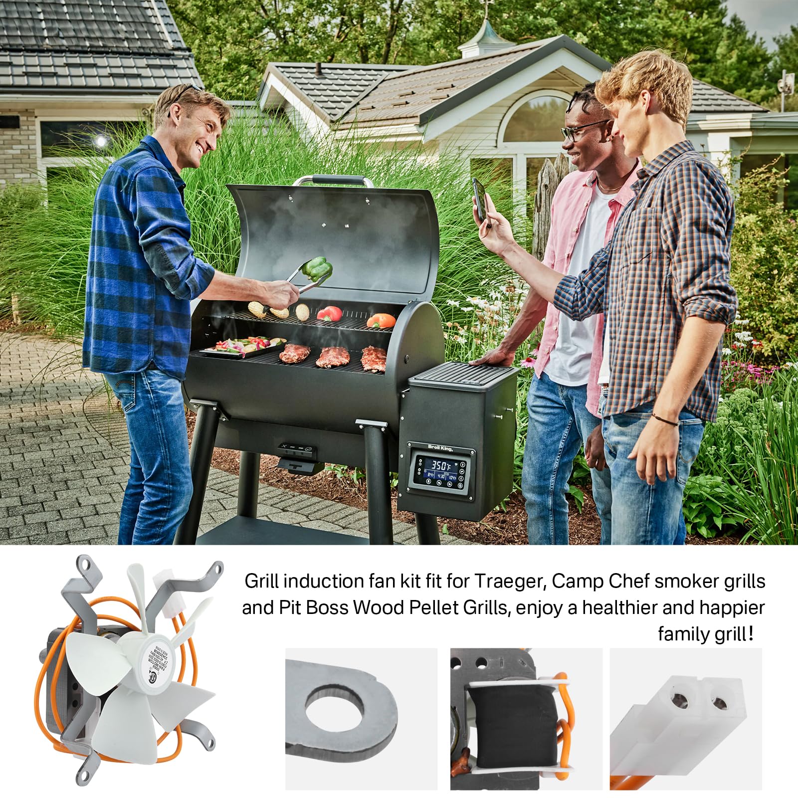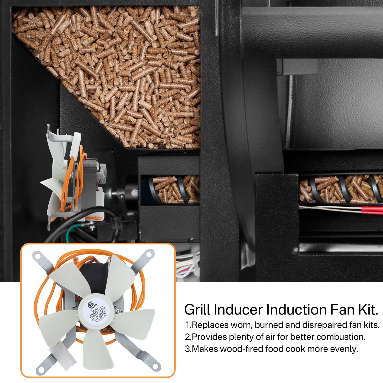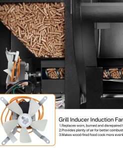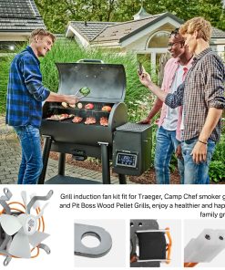 Kit de ventilador de inducción para parrillas actualizado, AC120V 60Hz, con cable resistente al calor de alta temperatura PEP, que es inspeccionado y probado estrictamente por el fabricante, las aspas de ventilador de nylon blanco no se desprenden fácilmente, no se cortocircuitan y tienen una vida útil más prolongada. El ventilador de inducción proporciona una gran cantidad de aire para la combustión de pellets, mantiene el flujo de combustible a través del fuego, los pellets se queman más completamente y circula el humo de madera dura a través de la cámara de la estufa para una cocción más uniforme de los alimentos a la leña.