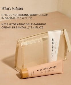 Tu rutina de autobronceado favorita ahora disponible en un kit de viaje de lujo. El kit incluye el autobronceador hidratante N32 en Santal y la crema corporal acondicionadora N14 en Santal en mini tallas de 3.4 fl oz, perfectas para llevar en tu equipaje de mano. Además, el kit viene con un estuche cosmético resistente al agua para un fácil almacenamiento durante tus viajes.