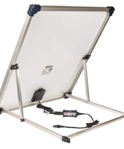El Kit de Viaje Optimate Solar 80W es perfecto para su próxima aventura de camping o viaje en RV. Con un panel de 80W que se puede colocar afuera para cargar una batería de ciclo profundo de 12V, este kit incluye todo lo necesario para mantener su batería en óptimas condiciones. El kit viene con un soporte trasero ajustable y pestañas de seguridad para el suelo, un controlador de carga inteligente para un funcionamiento eficiente, 2 cables de conexión de batería para una instalación fácil y rápida, y una bolsa de almacenamiento de nylon para transportar y almacenar todo el kit de manera segura. Conéctese directamente a la batería con los clips de batería incluidos o el cable de batería fusible. El controlador de carga inteligente es compatible con baterías de plomo-ácido de 12V, incluidas las baterías abiertas, GEL y AGM, garantizando una carga y mantenimiento precisos de la batería durante el día y la monitorización por la noche. ¡Prepárese para su próxima aventura con el Kit de Viaje Optimate Solar 80W!