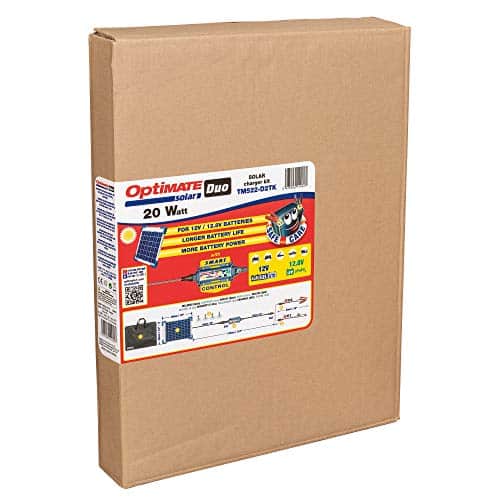 Ideal para mantener la carga de la batería de su automóvil, camión, barco, UTV o RV mientras están almacenados, el kit de viaje Tecmate Optimate Solar Duo 20W es una solución conveniente y confiable. Incluye un panel de 20W con soportes de ventosa removibles para facilitar la instalación, un controlador de carga DUO que funciona con baterías de plomo-ácido de 12V y litio de 12.8V (LFP / LiFePO4), 2 cables de conexión de batería para una fácil instalación, un adaptador de puerto OBDII para una conexión sencilla en su automóvil, camión o RV, y una práctica bolsa de almacenamiento de nylon para mantener todo organizado. El controlador DUO es completamente automático, cargando y manteniendo la batería durante el día y monitoreándola por la noche para garantizar un rendimiento óptimo y una larga vida útil de la batería.