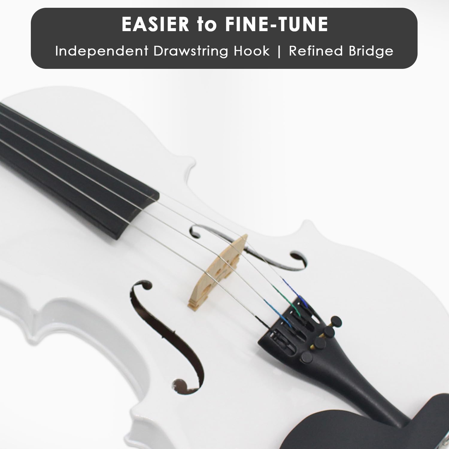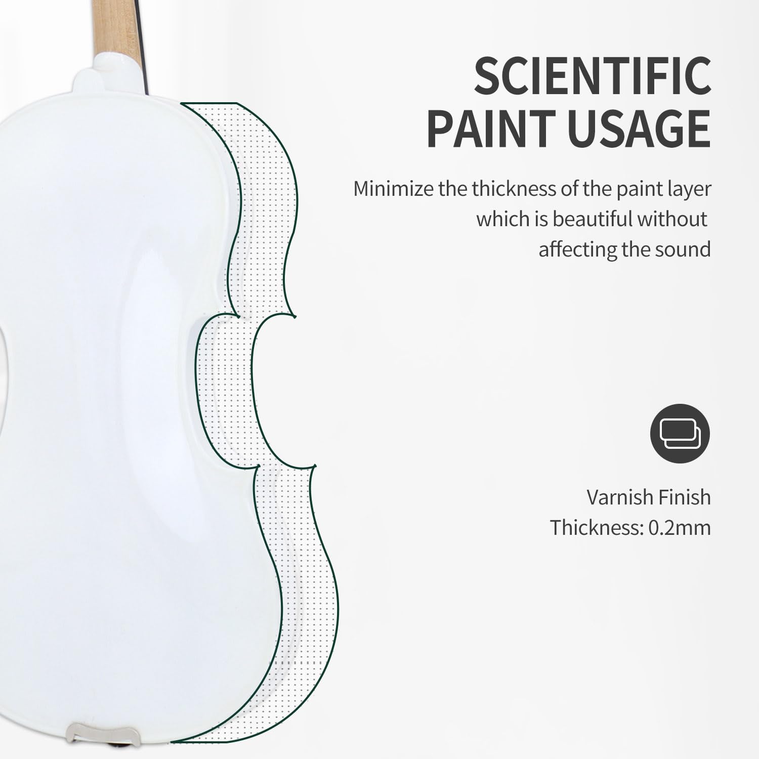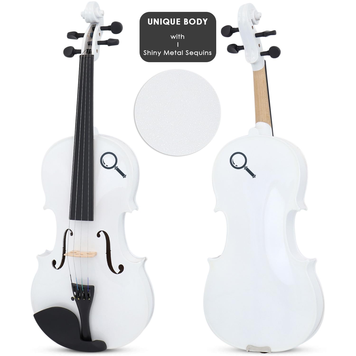 1. ARTESANÍA DE CALIDAD – Los violines de la serie Rainbow de Oneder combinan paneles de madera de abeto, tableros y placas laterales de arce; diapasón de madera blanca, clavijas de afinación y reposo de mentón; y cordal de aleación con 4 afinadores finos integrados. El cuerpo de madera maciza hace que el violín produzca una buena resonancia y sonido, absorba ruidos y fortalezca la armonía. 2. KIT AMIGABLE PARA PRINCIPIANTES – Ahora puedes enseñarte a ti mismo el violín gracias a nuestro completo kit para principiantes que incluye un violín, estuche de espuma rígida, arco, reposo de hombro, resina, afinador de pinza, paño de limpieza, puente y cuerdas de repuesto. Satisface todas las necesidades tanto de principiantes como de profesionales. Además, recibirás 10 calcomanías hermosas y divertidas para música, pégalas en el violín u otros objetos si lo deseas. 3. FÁCIL DE AFINAR – Las clavijas de afinación tratadas con punzón patentadas por Oneder presentan un coeficiente de fricción adecuado, mantienen el violín afinado y son difíciles de deslizar. Por favor, empuja los botones de afinación mientras afinas, para asegurarte de que los botones estén bien encajados. Y el afinador digital de pinza equipado con ayuda facilita la afinación y la interpretación. Las clavijas de afinación se encogerán y deslizarán si están demasiado secas, la humedad y la humidificación pueden hacer que se recuperen. 4. PINTURA CIENTÍFICA Y SONIDO BRILLANTE – Minimiza el grosor de la capa de pintura hace que el violín sea hermoso sin afectar el sonido. El violín con cuerdas de acero de alta calidad te brinda un sonido mucho más claro y brillante, una agradable resonancia y más sustain. 5. VARIEDAD DE COLORES DISPONIBLES – Los violines de la serie Rainbow de Oneder vienen en 7 colores únicos, puedes elegir el color que desees para mostrar tu personalidad. El acabado con el proceso de pulido único de Oneder, detalles de calidad para tu comodidad al tocar y durabilidad. Los violines coloridos a menudo pueden inspirar el entusiasmo de un principiante por aprender a tocar, son excelentes regalos para cumpleaños, Navidad, Acción de Gracias, etc.