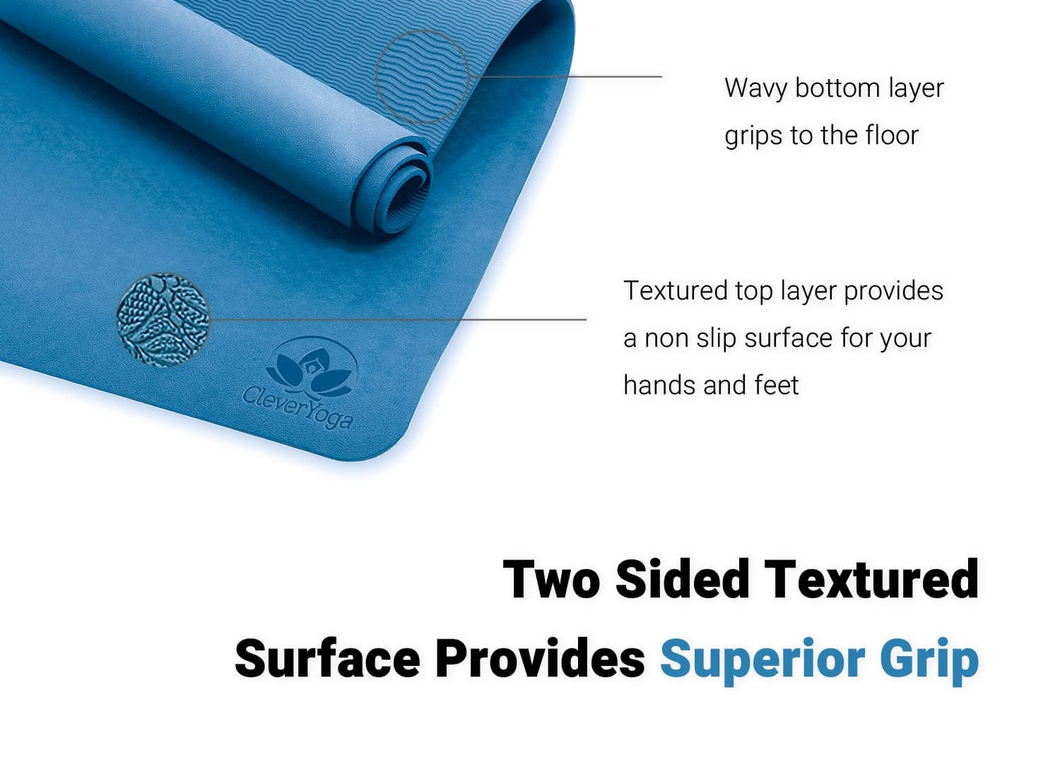 3. Tapete Confortable: Nuestro tapete de yoga Better Grip, hecho de TPE extra grueso, garantiza comodidad sin sacrificar soporte o estabilidad. Su diseño reversible de doble cara ofrece tracción en el suelo y una superficie adherente para manos y pies.