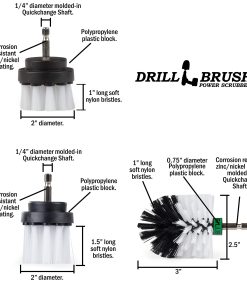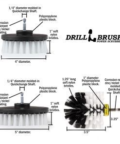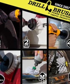 Drillbrush ha ensamblado el Kit Definitivo de Cepillos de Potencia para Detallado de Automóviles. Adecuado para Autos, Camiones, Motocicletas, Botes, Embarcaciones, Cuatrimotos y RVs. Limpie, Frote y detalle con este conjunto de cepillos de detalle de 6 piezas. Reemplace su cepillo giratorio eléctrico, cepillo para alfombras o kit de detallado de autos con un accesorio de cepillo para taladro en su lugar. Nuestro kit de cepillos de taladro puede limpiar con más potencia y velocidad que los suministros tradicionales de detallado de autos o cepillos de limpieza del hogar. Los Drillbrushes blancos tienen cerdas suaves para limpieza y fregado sin rayones. Limpie rines y ruedas de aluminio, magnesio, cromados, con recubrimiento transparente y pintados para autos, camiones y motocicletas con un cepillo de limpieza de autos o un cepillo para detalles de autos de este kit. Combine el potente movimiento de fregado de su taladro sin cables o destornillador de impacto con su limpiador de asientos favorito, limpiador de tapicería de auto o limpiador de alfombras de auto. El kit incluye varios cepillos para ruedas y cepillos de detalle. Utilice los cepillos más grandes de 5 y 4 pulgadas para limpiar lonas de menorca, cubiertas de botes, grandes secciones de alfombras en furgonetas o RVs. Estos accesorios de taladro para limpieza de autos en áreas grandes también funcionan muy bien como limpiador de tapicería para muebles, limpiador de alfombras de autos o limpiador de tapicería de autos. Convierta su taladro en una máquina limpiadora de tapicería utilizando nuestro kit de limpieza de autos para que su viaje luzca como nuevo. Agregue estos cepillos a su kit de limpieza de camiones o kit de detallado de camiones y ahorre tiempo y esfuerzo limpiando con Drillbrush. Limpie y detalle su interior con el MINI y un cepillo de 2 pulgadas. Limpie asientos y tapicería de vinilo, cuero, tela. Restaure alfombras, paneles laterales y pisos a condiciones de exhibición. Este kit de cepillo de fregado no es solo para autos. Este kit de limpieza de interiores de autos también se puede utilizar para limpieza de motocicletas o como kit de limpieza de camiones. Estos cepillos de auto de alto detalle alimentados por taladro son ideales para limpiar todo tipo de accesorios interiores de autos y camiones, como tapetes, forros de carga y cubiertas de tablero. Incluido: El Original Drillbrush Power Scrubber en blanco suave, un Original MINI, un diámetro de 5 pulgadas, un diámetro de 4 pulgadas, un cepillo de cerdas cortas de 2 pulgadas de diámetro y un cepillo de cerdas largas de 2 pulgadas de diámetro (todos en blanco suave). Todos los cepillos en este conjunto de cepillos de limpieza de taladro cuentan con ejes de acero robustos con extremos de cambio rápido de un cuarto de pulgada, lo que permite su uso con taladros de medio pulgada, taladros de tres octavos Y controladores de cambio rápido. Incluye múltiples tamaños de cepillo de fregado de energía para que siempre tenga la herramienta adecuada para el trabajo. Todos los productos de Drillbrush tienen una ventana de devolución de 90 días sin preguntas. Si no está completamente satisfecho con nuestro producto, emitiremos un reembolso o enviaremos un reemplazo a solicitud del comprador. Taladro inalámbrico NO incluido