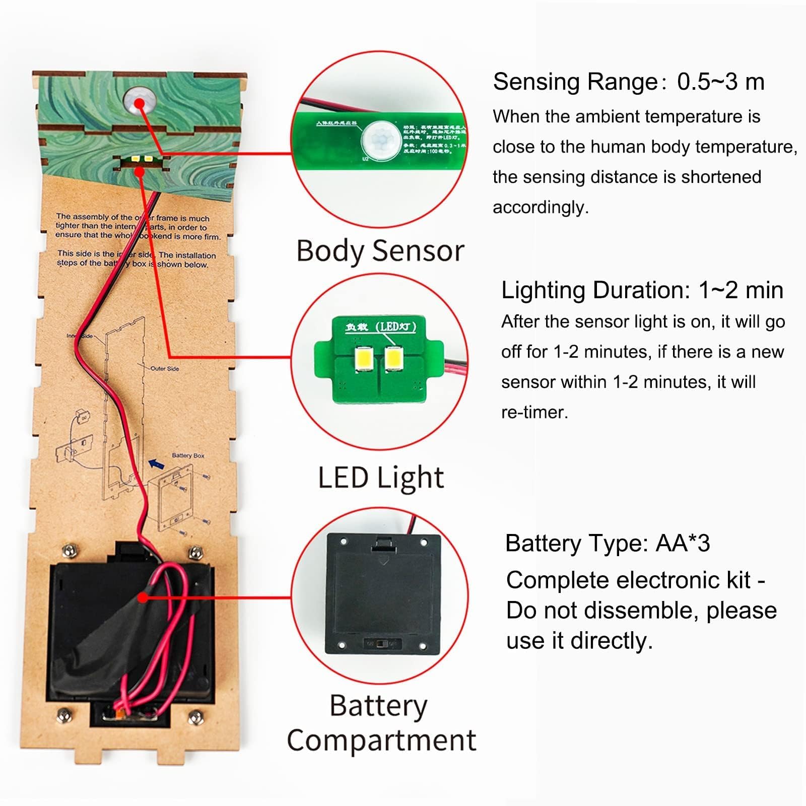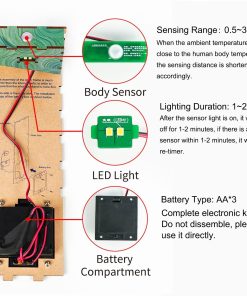 Por favor, ten en cuenta que necesitarás preparar tu propio pegamento de alcohol y 3 pilas (tamaño AA) ya que no se permiten ser enviadas por aire. Ilumina tus pensamientos con nuestro inserto de estantería iluminado: una nueva manera revolucionaria de mostrar tus libros favoritos. El Kit DIY Book Nook trae la magia de tus libros favoritos a la vida, traspasando lo ordinario y creando un ambiente imaginativo. Esta pieza meticulosamente elaborada es el acento perfecto para la casa de cualquier amante de los libros, proporcionando un rincón acogedor para leer, soñar y escapar a un mundo imaginario. Este kit DIY no es solo un proyecto, sino un viaje que te permite explorar tu creatividad, paciencia y meticulosidad. Disfruta de la gratificación de llevar a la vida tu arduo trabajo e indulgencia en la alegría de elaborar tu propio encantador rincón de lectura. Destacados: Control de Sensor de Cuerpo – Luz LED con Sensor Humano Luz de Noche de Ambiente Crea Posibilidades Ilimitadas en un Espacio Limitado Diorama Miniatura 3D Efecto de Vista Profunda Creativa Material de Alta Calidad Tecnología de Corte Preciso Especificaciones Marca: ROCOXIA Nombre del Producto: Kit DIY Book Nook con Luz LED Sensor de Cuerpo Humano Materiales: Madera de alta calidad Peso: 2.2 LB Tamaño terminado: 10 x 7.6 x 2.2 pulgadas Rango del sensor de cuerpo humano: 0.3m – 2m Batería: 3 pilas AA (no incluidas) Lista de Paquetes Piezas del rompecabezas 1 Kit electrónico pre-ensamblado 1 Instrucciones de montaje en inglés 1 Espejo de vista profunda 1 Destornillador