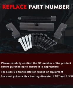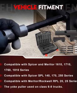 El kit extractor de yugo Heavy-Duty Merautop SJ 60050 está diseñado para camiones y equipos de clase 6-8. Con una capacidad de más de 25,000 libras de fuerza de tracción, este extractor de yugo heavy-duty es ideal para quitar yugos pesados en transmisiones, árboles de transmisión y diferenciales traseros sin dañar las piezas. Fabricado con acero premium y recubierto con recubrimiento en polvo negro para resistencia a la corrosión y al desgaste, este kit de herramientas proporciona un rendimiento estable y duradero. El paquete incluye un cuerpo extractor, un tornillo extractor, bloques de sujeción y varios pernos de brida para una extracción eficaz de yugos. Compra ahora el kit extractor de yugo Heavy-Duty Merautop SJ 60050 y ahorra tiempo y esfuerzo en tus proyectos de mantenimiento de vehículos.