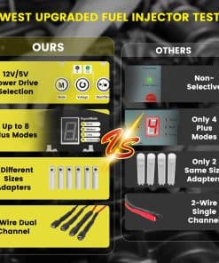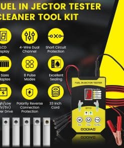 El kit limpiador de probador de inyectores de combustible GODIAG contiene una variedad de características que lo hacen indispensable para cualquier dueño de vehículo. Incluye 6 adaptadores de limpieza de diferentes tamaños que son compatibles con una amplia gama de inyectores de combustible, desde EFI hasta inyectores de motocicletas. Con 8 modos de pulso y una pantalla LCD que muestra claramente el modo seleccionado, este kit facilita la detección del rendimiento del inyector y la identificación de posibles fallas. Además, con protección de polaridad inversa y protección contra cortocircuitos, puede estar seguro de que su equipo y usted estarán seguros durante el uso. Este kit especial también le permite probar dos inyectores simultáneamente, lo que agiliza el proceso de diagnóstico. Tenga en cuenta que este kit se puede utilizar con cualquier probador de presión de combustible, no incluye fuente de alimentación ni agente de limpieza, y solo es adecuado para motores de gasolina, no para motores diésel. Recuerde que el kit está diseñado para funcionar con baterías de vehículos de 12V o con un adaptador de corriente continua externo de 12V recomendado de al menos 1.5A.
