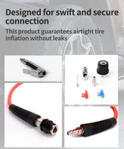 1. Conexión hermética: Conexión rápida sin fugas de aire, diseñada como conexión y desconexión rápida, asegura que la inflación de los neumáticos no se escape.