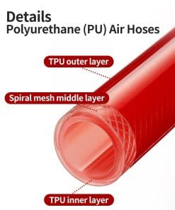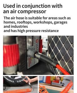 2. Utilizado junto con un compresor de aire: La manguera de aire es adecuada para áreas como hogares, azoteas, talleres, garajes e industrias, y tiene una alta resistencia a la presión.