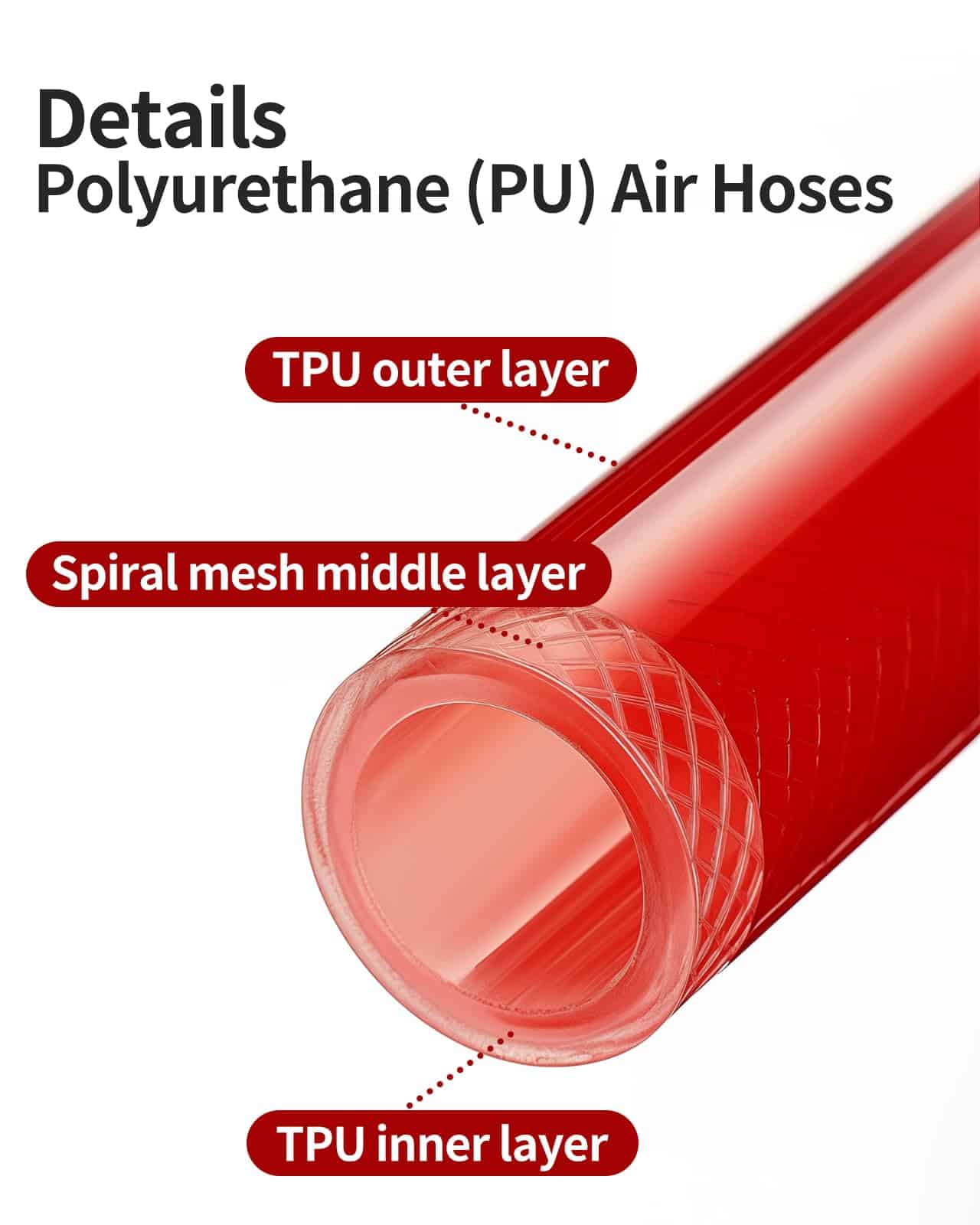 4. Uso a baja temperatura: Debido a su excelente flexibilidad en climas fríos, la manguera de poliuretano es perfecta para su uso durante todo el año a temperaturas tan bajas como -20 grados Celsius.