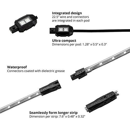 Disfruta de la iluminación intensa y de calidad con este kit premium de luces LED de 2da Generación. El juego incluye 8 Pods y 2 tiras para el motor de la motocicleta y las luces de neón para el suelo. Viene equipado con un control remoto de 4 teclas para facilitar el uso. Compatibilidad con varias marcas populares de motocicletas. ¡Resalta tu motocicleta con estas luces de alta calidad!
