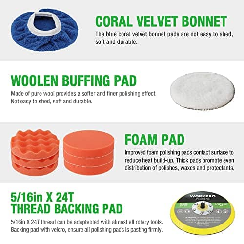 Kit Pulidor de Auto WORKPRO, Pulidor de Doble Acción de 6