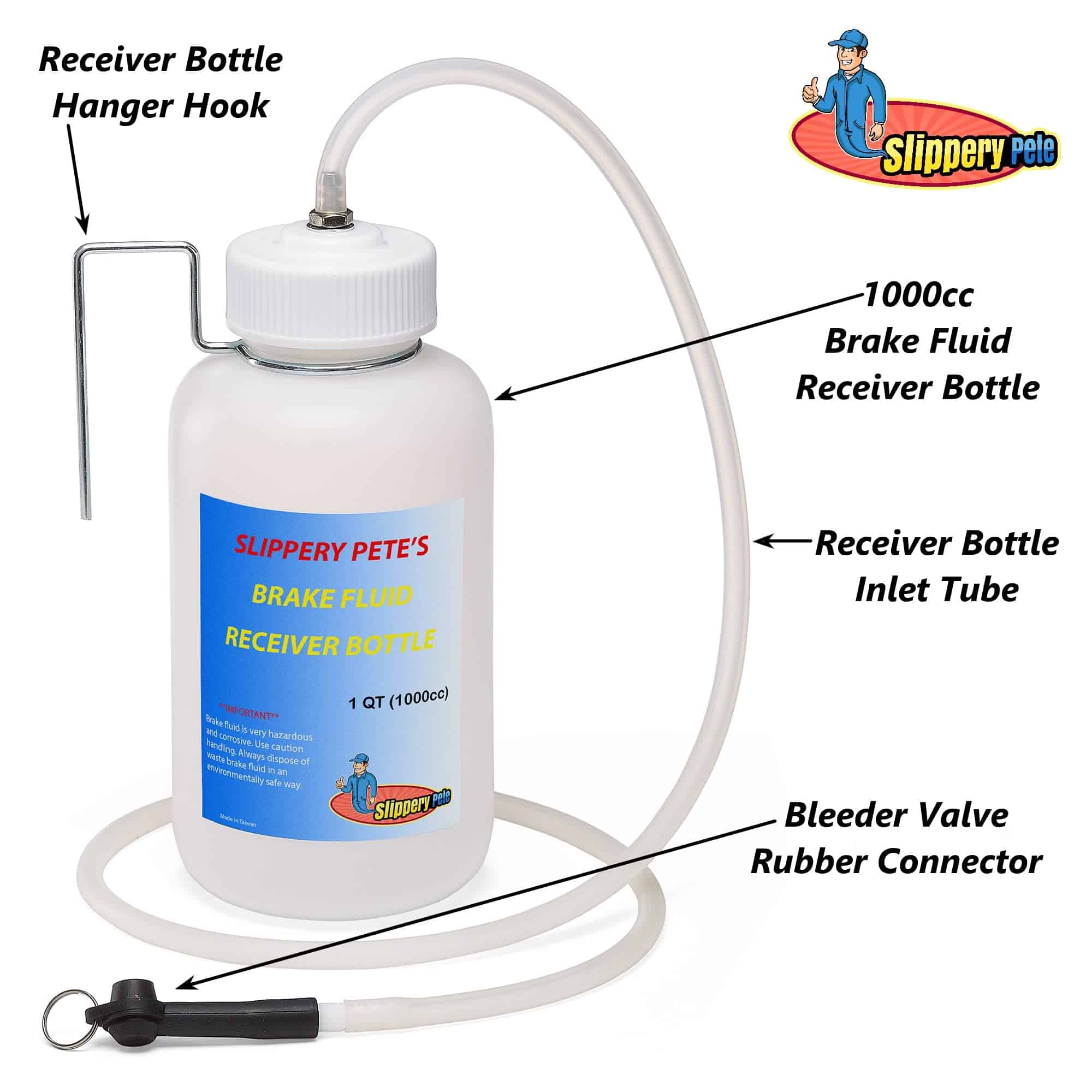 3. Botella receptora transparente de 1 qt para residuos de líquido de frenos.