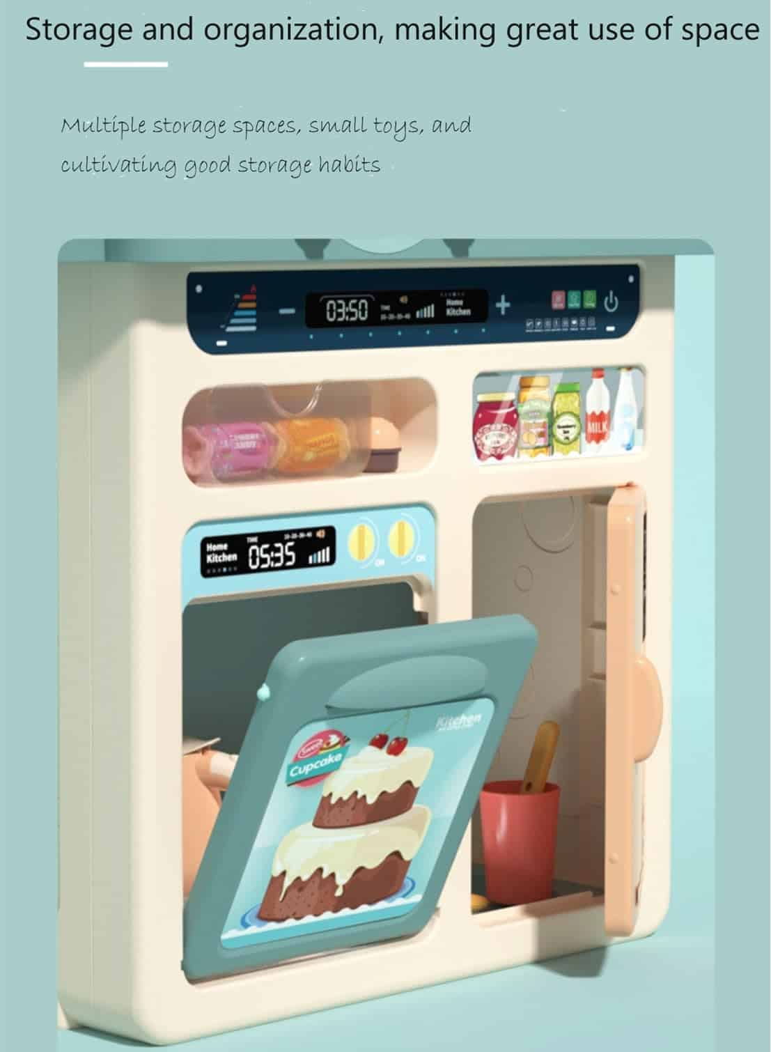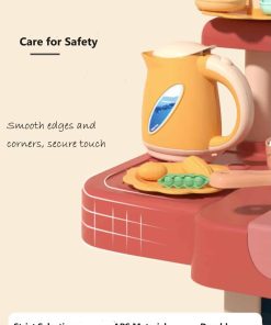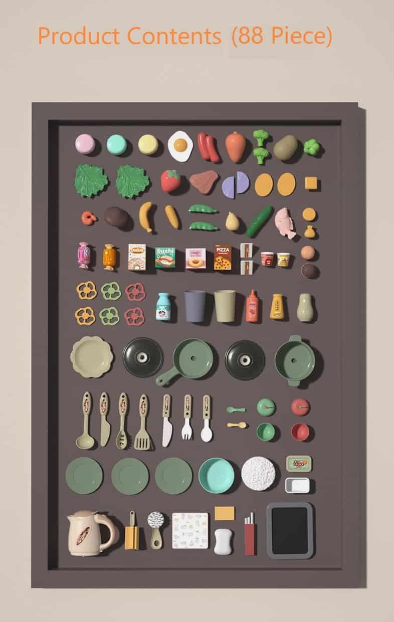 Serena & Jewel Kit para – Juego de Cocina de Comida de Mentira – Set de Accesorios de Juguete con Sonidos Reales y Luz, Fregadero de Juego, Estufa de Cocinar con Efluvio, 88 piezas para Niños Pequeños, Niñas y Niños de 3-10 Años (naranja)