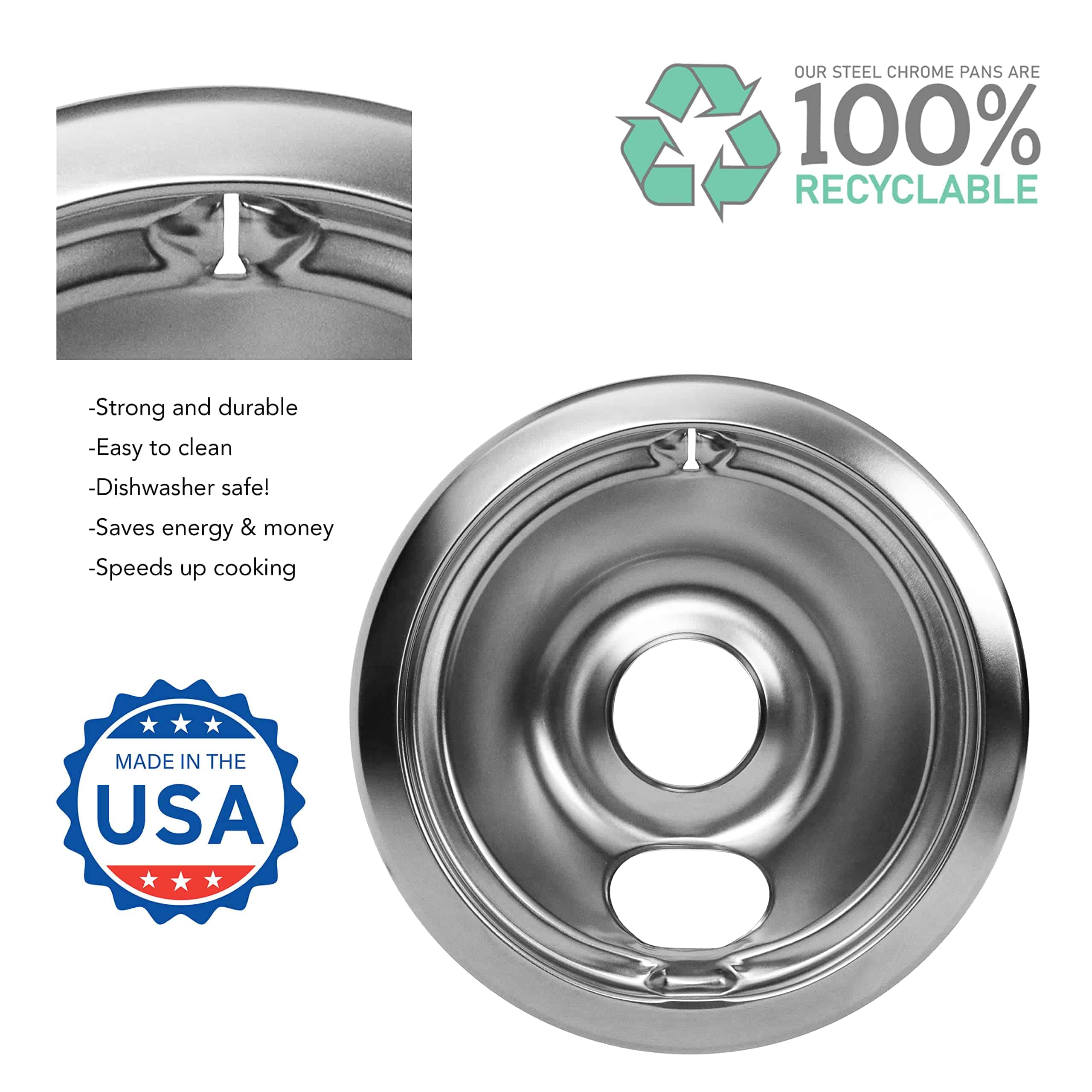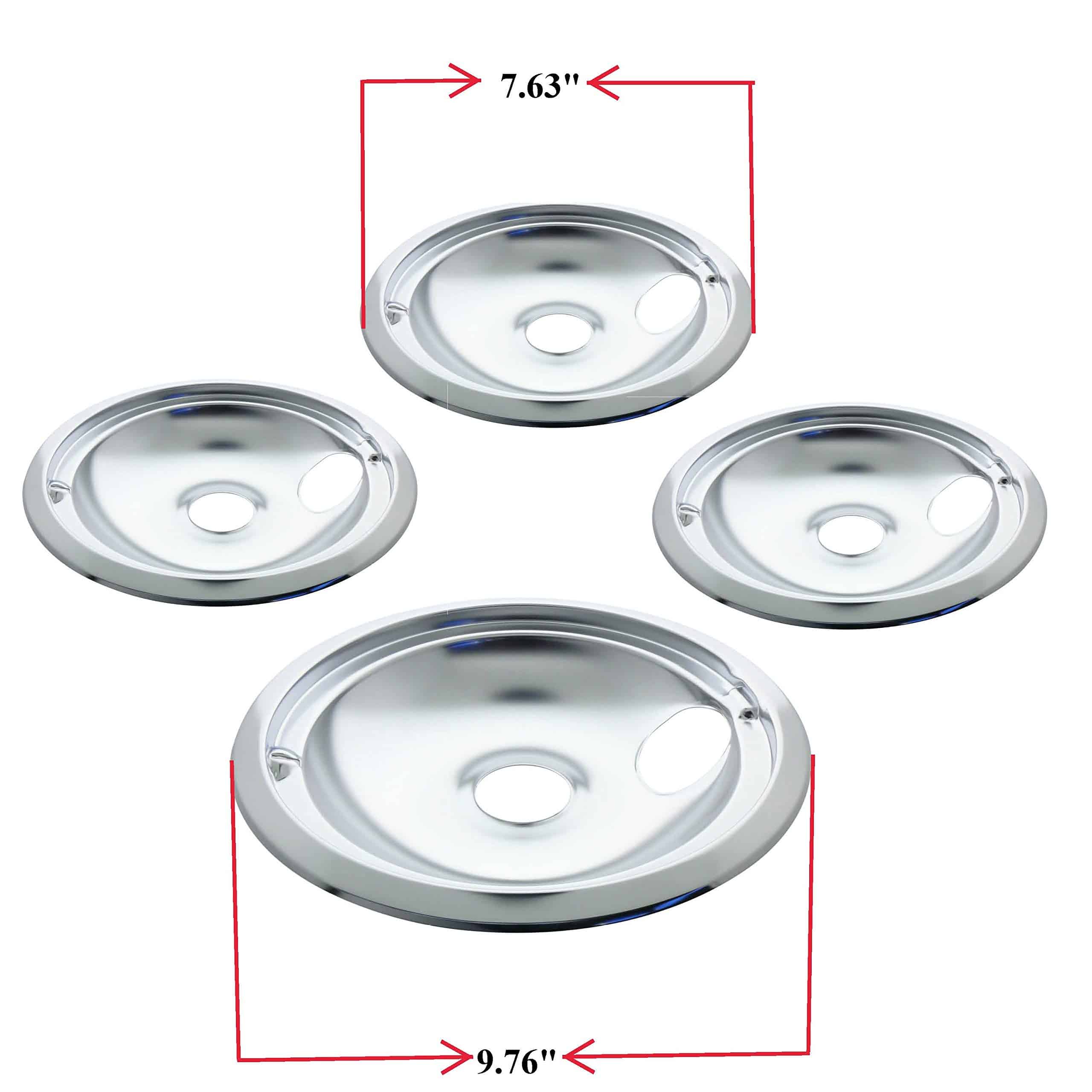 Este es un set de 4 bandejas de goteo estilo B 119204XZ cromadas – 3 pequeñas de 6” y 1 grande de 8” – reemplazo para GE, Monogram, Profile, Roper desde 1990. Características: Ranura de bloqueo de elemento, duraderas, sin adherencia, fáciles de limpiar, aptas para lavavajillas. Previenen el balanceo del elemento en la bandeja de goteo, evitando que los utensilios de cocina se balanceen en la estufa. ¡Ahorre dinero y energía! Reemplazar las bandejas de goteo cromadas anualmente puede ahorrar hasta $30 al año en costos de energía. Acelera el tiempo de cocción, ahorra energía y hace que la cocina parezca nueva. Los números de piezas de los fabricantes son solo para identificación. Todos los materiales suministrados por nosotros son reemplazos de las partes de los fabricantes. Todos los nombres de productos y compañías son marcas comerciales o marcas registradas de sus respectivos propietarios. Su uso no implica ninguna afiliación o respaldo por parte de ellos.