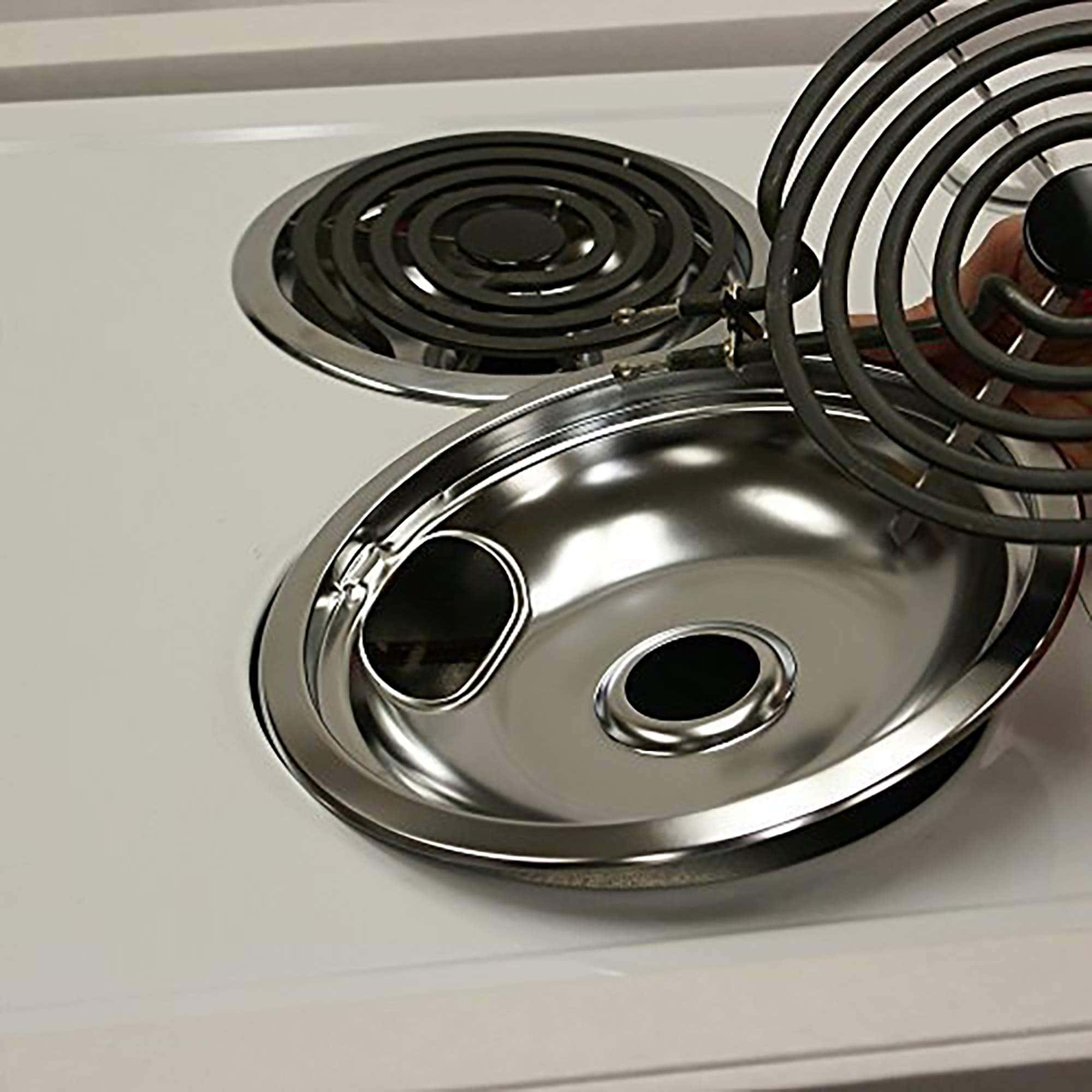 Band bandeja de 6″ compatible con: W10196406, WPW10196406, 101, 101A, 101AM, 1065-207, 1065209, 14200056, 14200209, 14203427, 14205045, 14205549, 14210002, 14211601, 14212298, 14218107, 14219065, 19950014, 229768, 281348, 296481, 308648K, 309427K, 3150246A, 3150246P, 332-180, 7725P002-60, 7725P015-60, 8190674, 93159246B, C2710302, K15017, PS11750108, R0705553, RDP213, W10132136, W10196406BU, W10278125. Bandeja de 8″ compatible con: W10196405, WPW10196405, W10196405, 1065208, 14200090, 14200186, 14202962, 14205069, 14205554, 14210006, 14212235, 14213550, 14217393, 14219066, 19950013, 305839Y, 308649K, 309426K, 3150247A, 332-185, 42142, 52005, 73325-1, 7725P009-60, 7725P042-60, 7725P054-60, C2710601, CPL, L30-004, R0179034, R0705559, W10126584, W10132135, W10179653, W10196405BU, W10278125. Estilo A se adapta a la mayoría de las estufas eléctricas enchufables incluyendo marcas reconocidas. Características: ranura de bloqueo de elemento, repuesto de calidad genuina. Duradero, antiadherente, fácil de limpiar, apto para lavavajillas. Asegura un ajuste adecuado de la bandeja de goteo para evitar movimientos no deseados en la estufa.