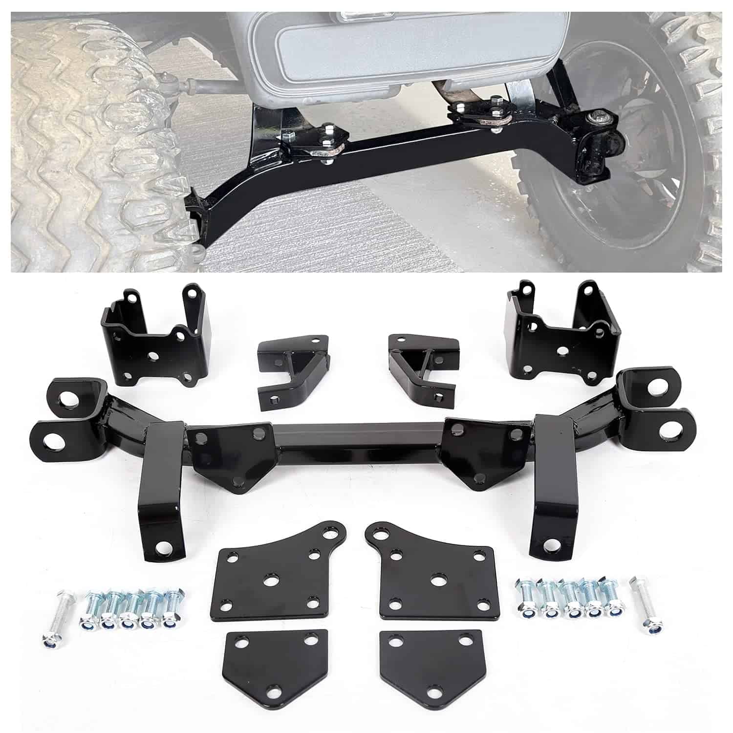 Compatible con EZGO Medalist/TXT eléctrico (1994-2001.5). ¡Incluye hardware de alta resistencia Clase 8.8 de aleación (carga de prueba de 85000 psi/ Resistencia a la tracción mínima de 92000 psi/ Resistencia a la tracción de 120000 psi)! ¡Reemplaza eje delantero de serie con diseño de eje de caída! ¡Acepta llantas de hasta 23″ de diámetro! ¡Incluye elevación delantera y trasera! ¡Sin necesidad de cortar o soldar!