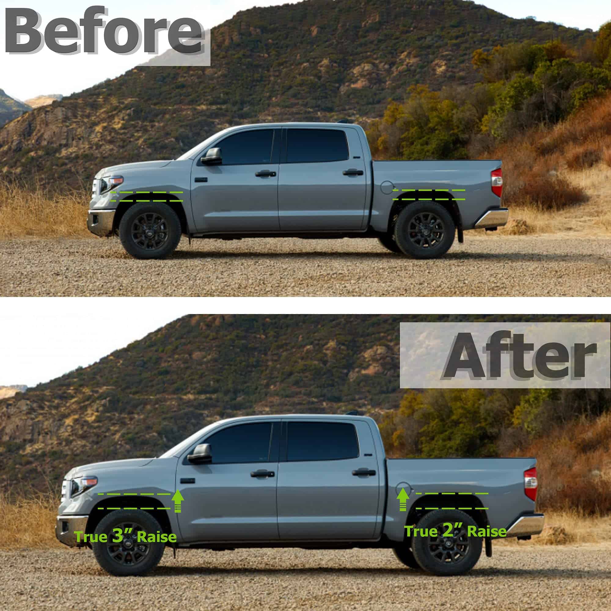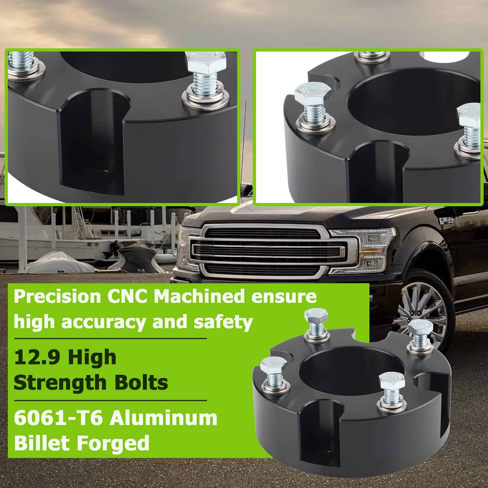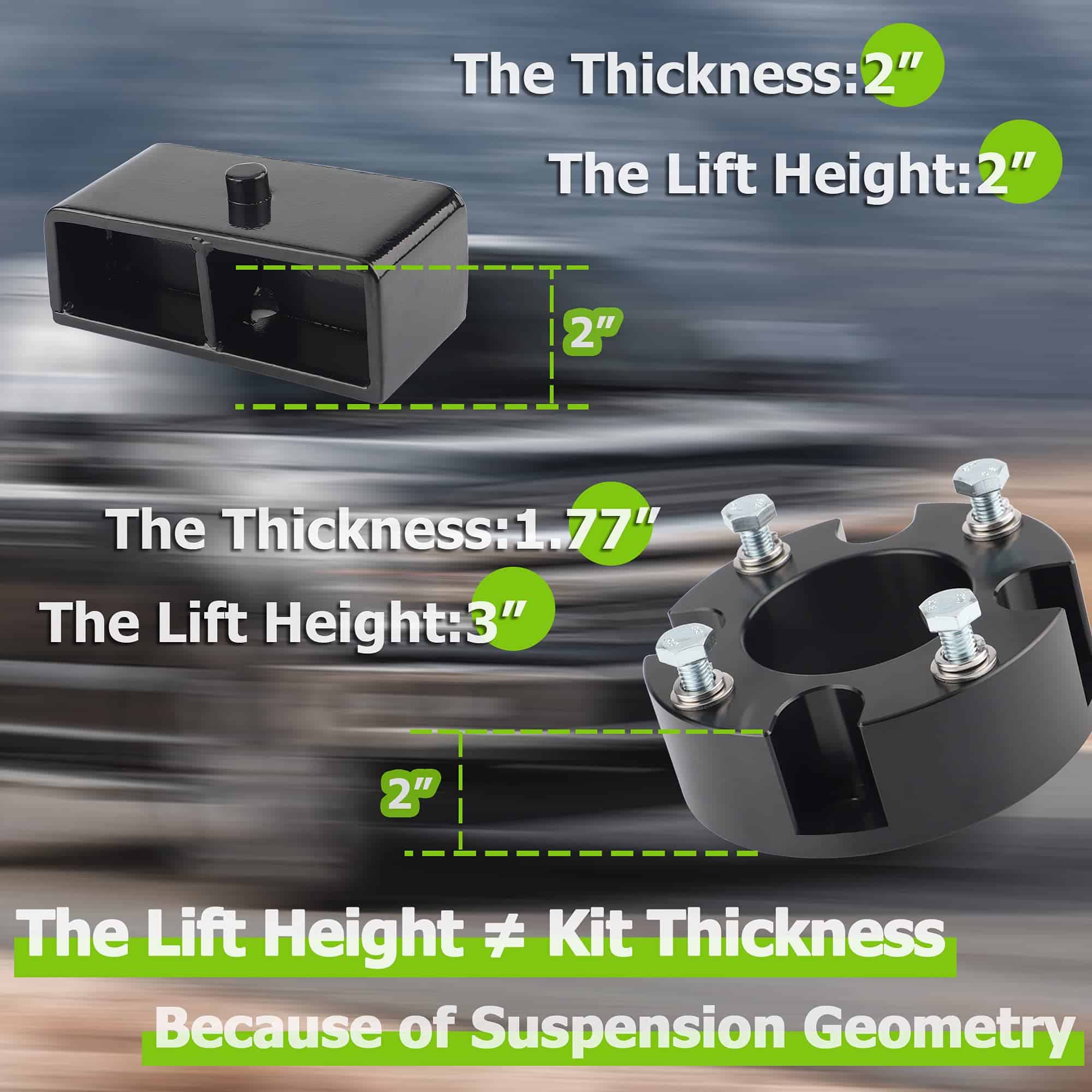 Compatibilidad: Tundra 2WD 4WD 2007-2020Aviso: Este kit elevará la parte delantera de tu auto en 3 pulgadas y la parte trasera en 2 pulgadas. Debido a la geometría de la suspensión, la proporción de altura de elevación al grosor del kit no es 1:1. El grosor real del kit de elevación es menos que la altura de elevación.Ventaja: Forjado en aleación de aluminio 6061-T6, proceso automático CNC, anodizado superficial, que no solo garantiza alta precisión y estabilidad, sino que también mejora la dureza y resistencia a la corrosión del material