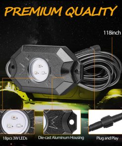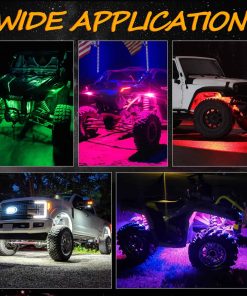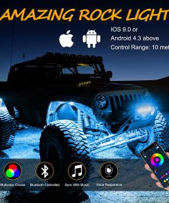 1. CONTROLADO POR BLUETOOTH – Con conexión bluetooth estable, los kits de luces de roca RGB ofrecen 16 millones de colores para que puedas personalizar diferentes escenarios de iluminación (color, brillo, frecuencia de destello), incluso cambiar las luces siguiendo el ritmo de tu música. Permítete tener más diversión en el camino.