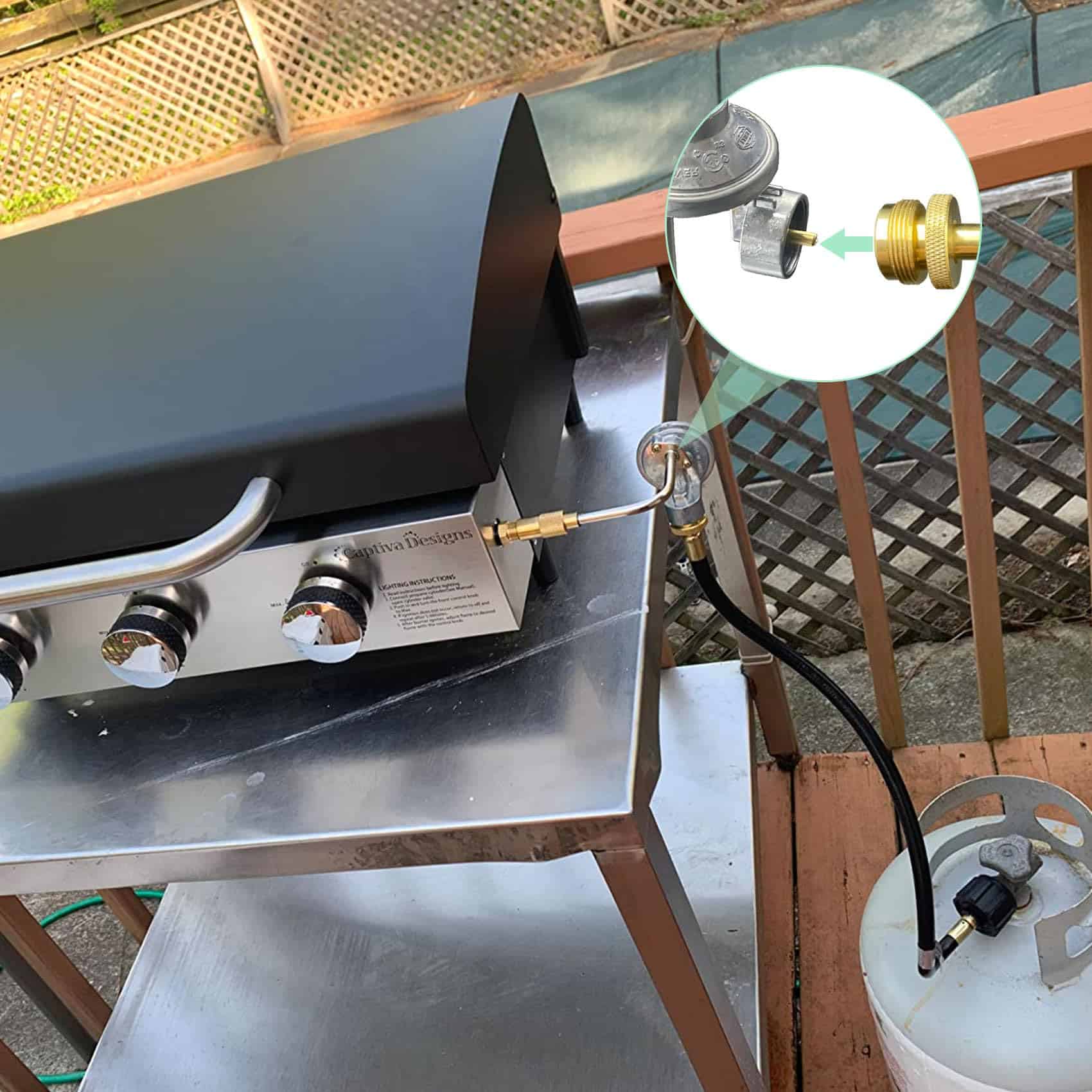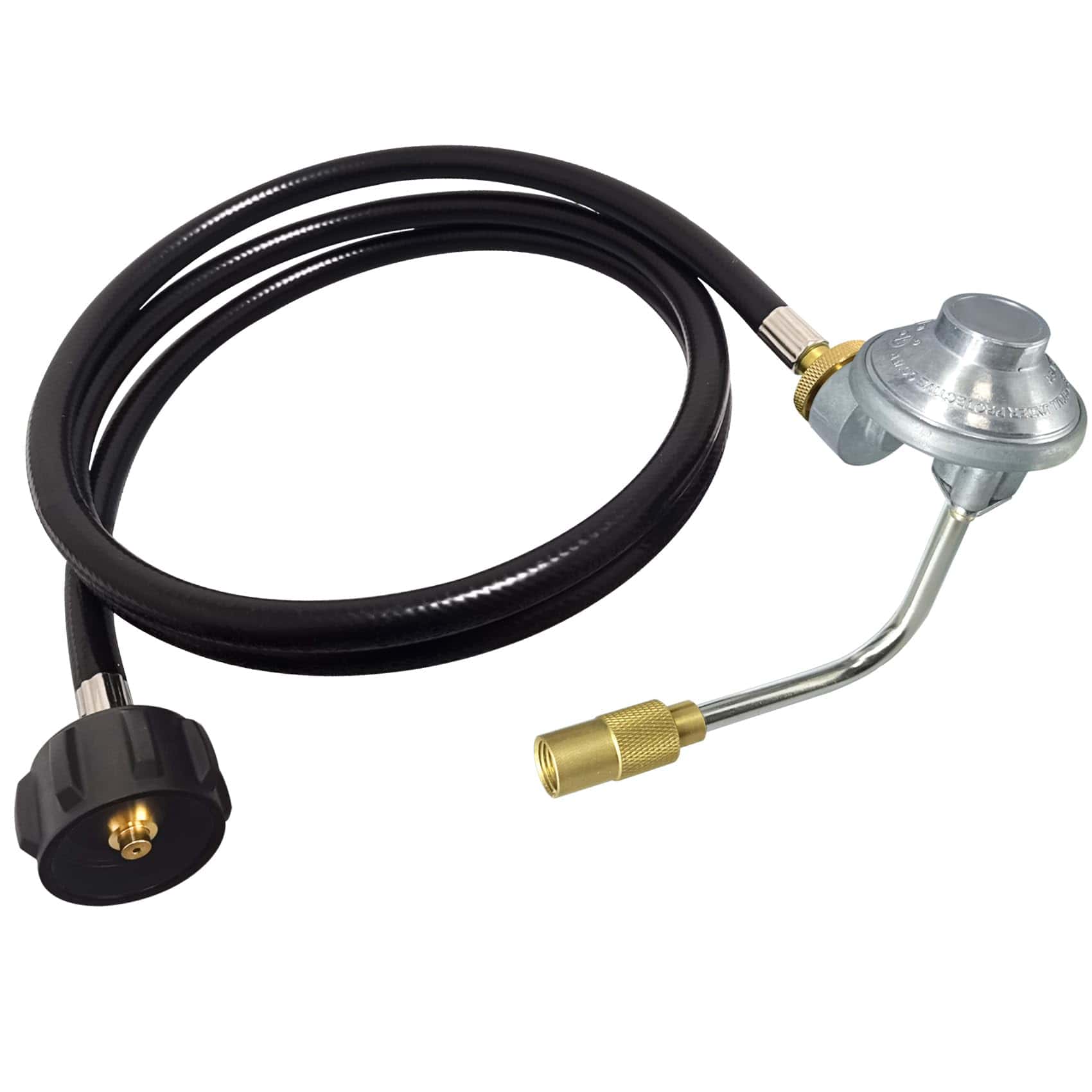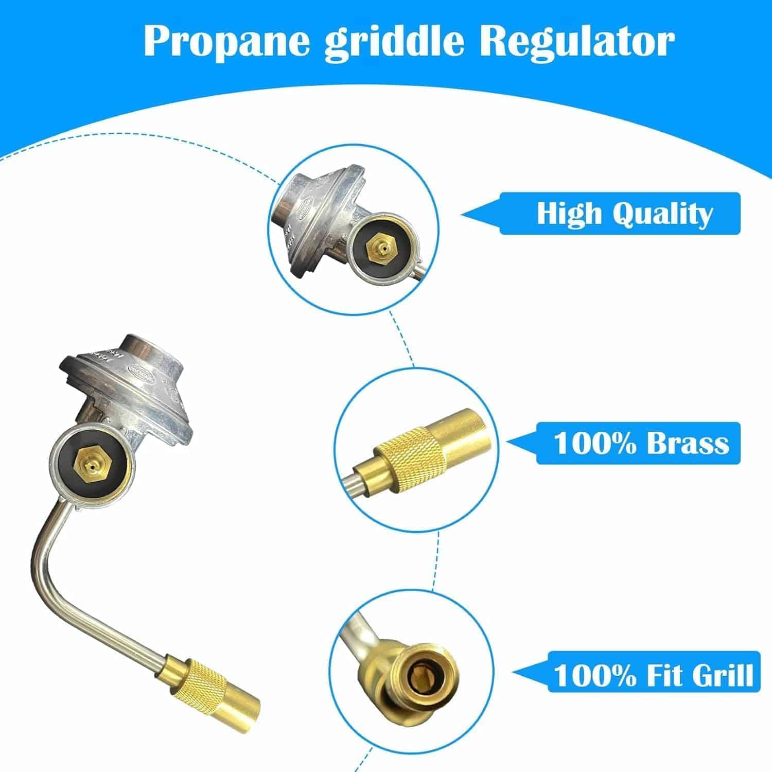 1. Kits de manguera de Regulador de Parrilla para las parrillas Blackstone 17″ y 22″ de mesa (Modelos de Parrilla 1650, 1814, 1832, 1666, 1813, 1833, 1842), compatible con CharBroil 19952085 de 22 pulgadas con 2 quemadores, se adapta a la Parrilla de Mesa Pit Boss PB336GS de 2 quemadores. También se adapta a la parrilla de Razor Blue Rhino y a la parrilla de mesa superior de Royal Gourmet y MaxKare. Perfecto para el Adaptador de la Parrilla de Mesa Member’s Mark de 22″, compatible con un tanque de propano de 1 lb a 20 lb.