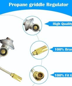 2. Este es el kit perfecto de regulador de gas propano para parrillas y es un gran regalo para cualquier persona a la que le guste hacer barbacoas. Regulador de gas, piezas de repuesto, flujo de gas 25000BTU/hr, presión de salida 11″W.C. Paquete incluido: 1 Regulador/Adaptador de Parrilla de Mesa Piezas de repuesto del mercado de postventa, asegúrate de verificar amablemente el modelo de tu parrilla antes de comprar el Adaptador de Regulador de Parrilla con Manguera de Propano de 6 FT.